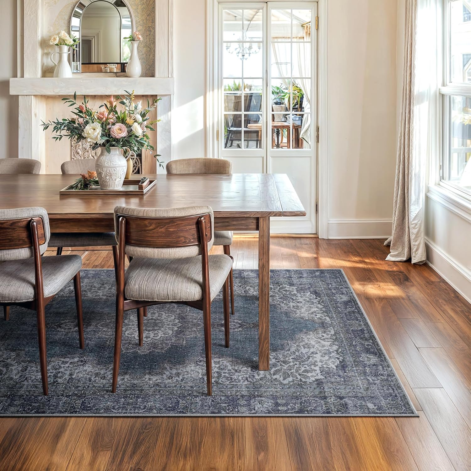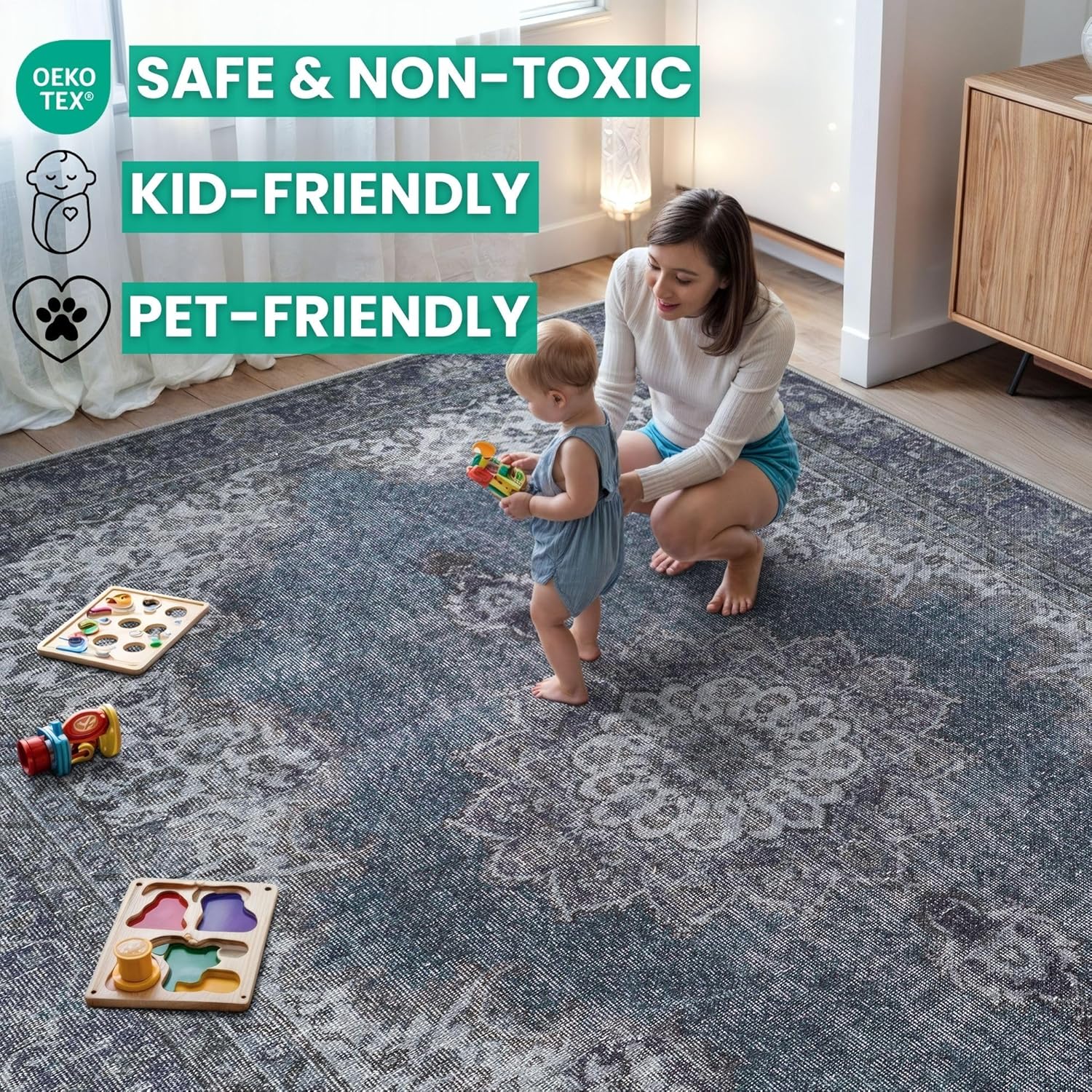 Bloom Rugs Washable Non-Slip 6' x 9' Rug - Dark Teal Traditional Medallion Area Rug for Living Room, Bedroom, Dining Room, and Kitchen - Exact Size: 6' x 9'