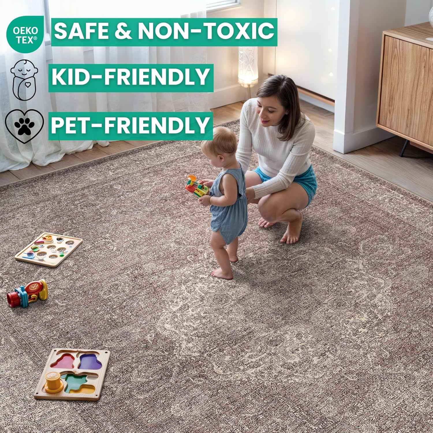 • EASY TO SETUP AND NON-SLIP: This one-piece machine washable rug with non-slip backing attached eliminates any additional setup. Simply unfold and lay flat upon arrival in the desired space. Non-slip backing prevents the rug from moving or sliding without the need for additional rug pad or grippers.
