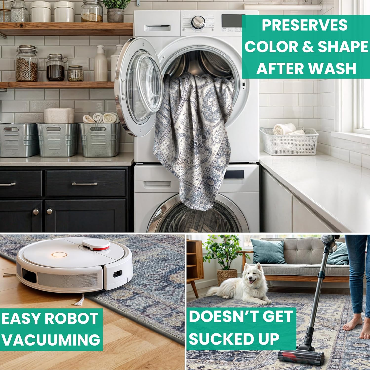• MACHINE WASHABLE: Machine wash on delicate cycle (do not use bleach) at 85°F (30°C) and line dry or dry on air-only cycle without heat. Vacuum regularly and spot clean small stains. This easy to clean rug is perfect for families with kids and pets, and for high traffic areas.