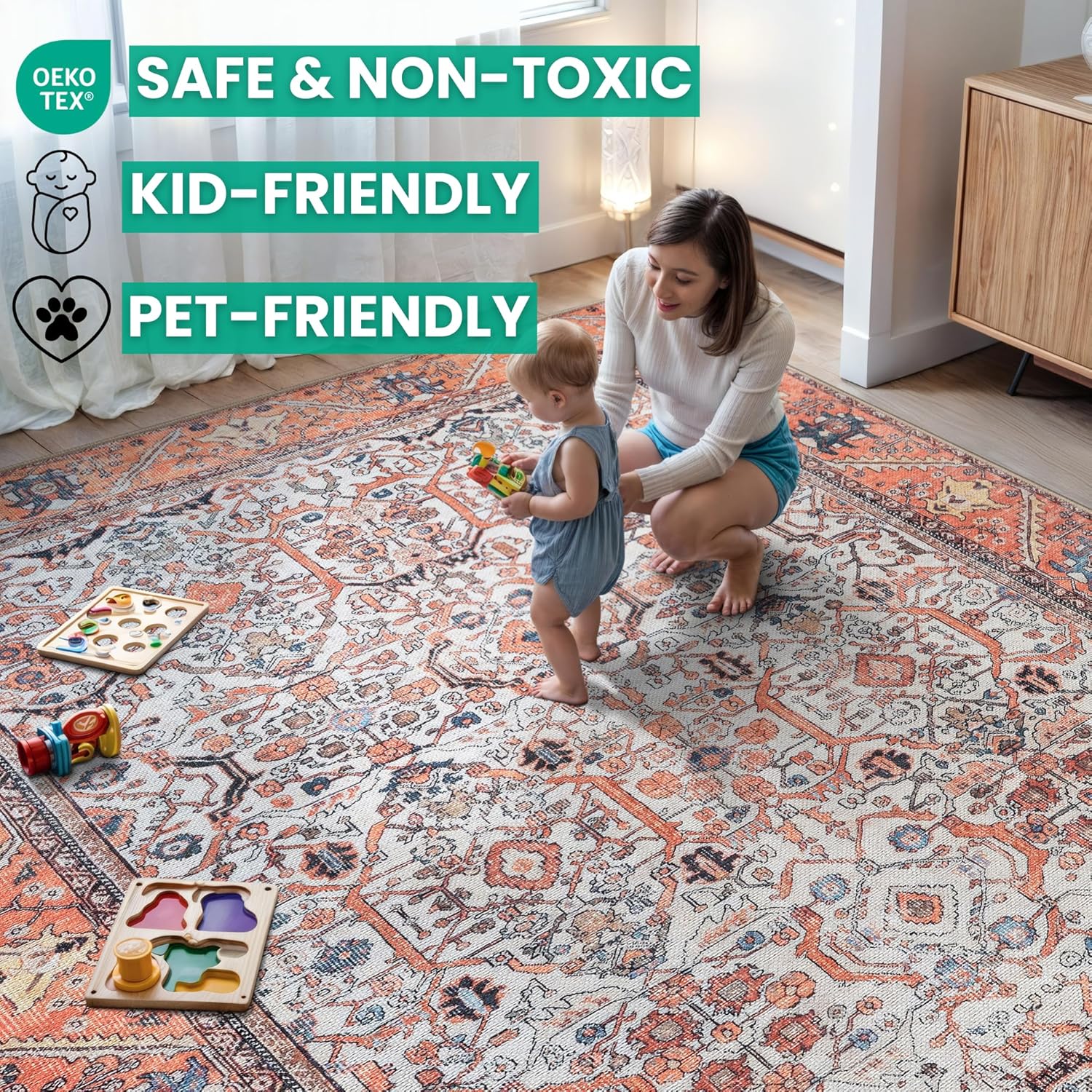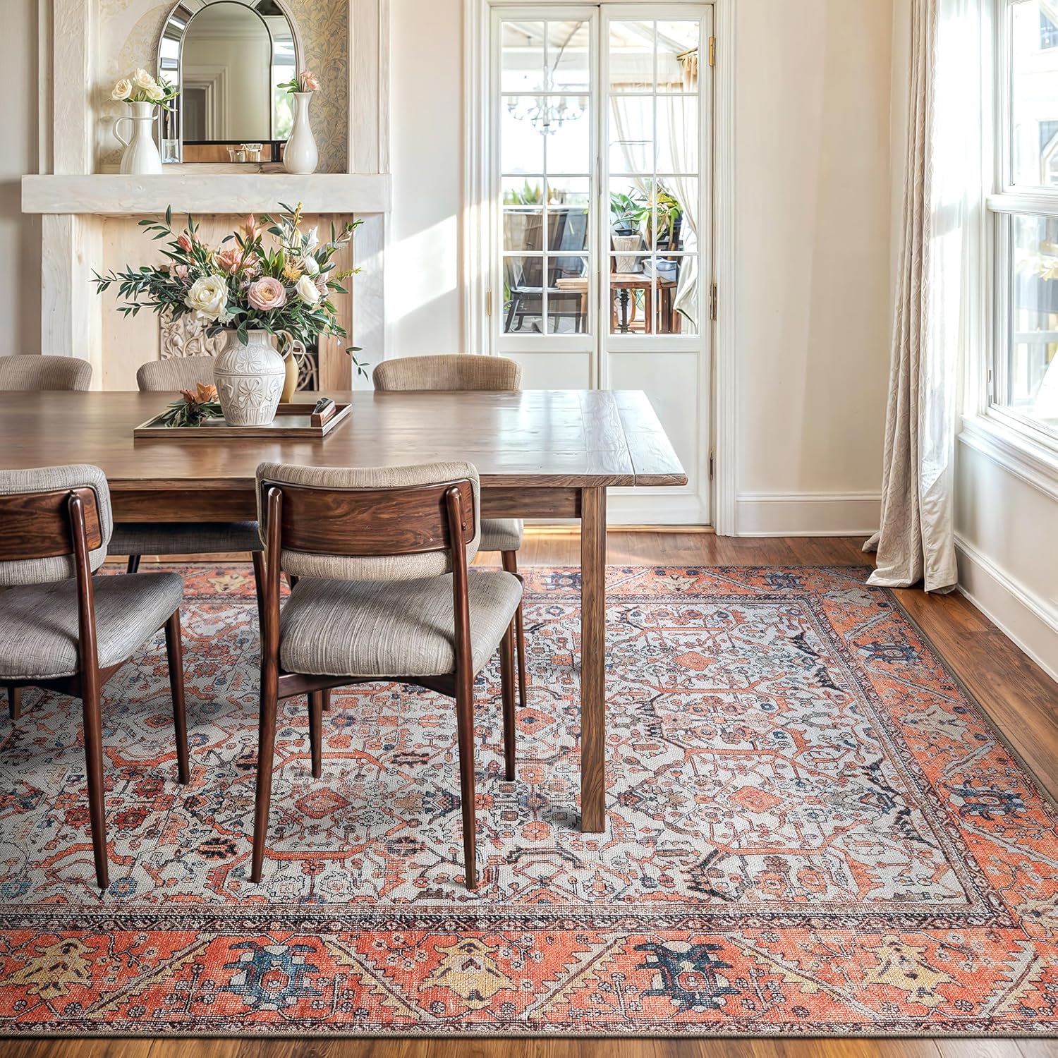 • EASY TO SETUP AND NON-SLIP: This one-piece machine washable rug with non-slip backing attached eliminates any additional setup. Simply unfold and lay flat upon arrival in the desired space. Non-slip backing prevents the rug from moving or sliding without the need for additional rug pad or grippers.