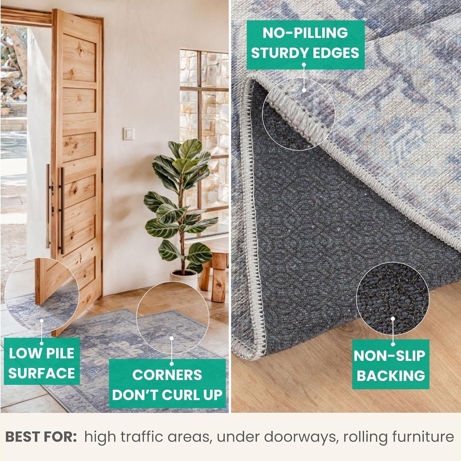 • EASY TO SETUP AND NON-SLIP: This one-piece machine washable rug with non-slip backing attached eliminates any additional setup. Simply unfold and lay flat upon arrival in the desired space. Non-slip backing prevents the rug from moving or sliding without the need for additional rug pad or grippers.