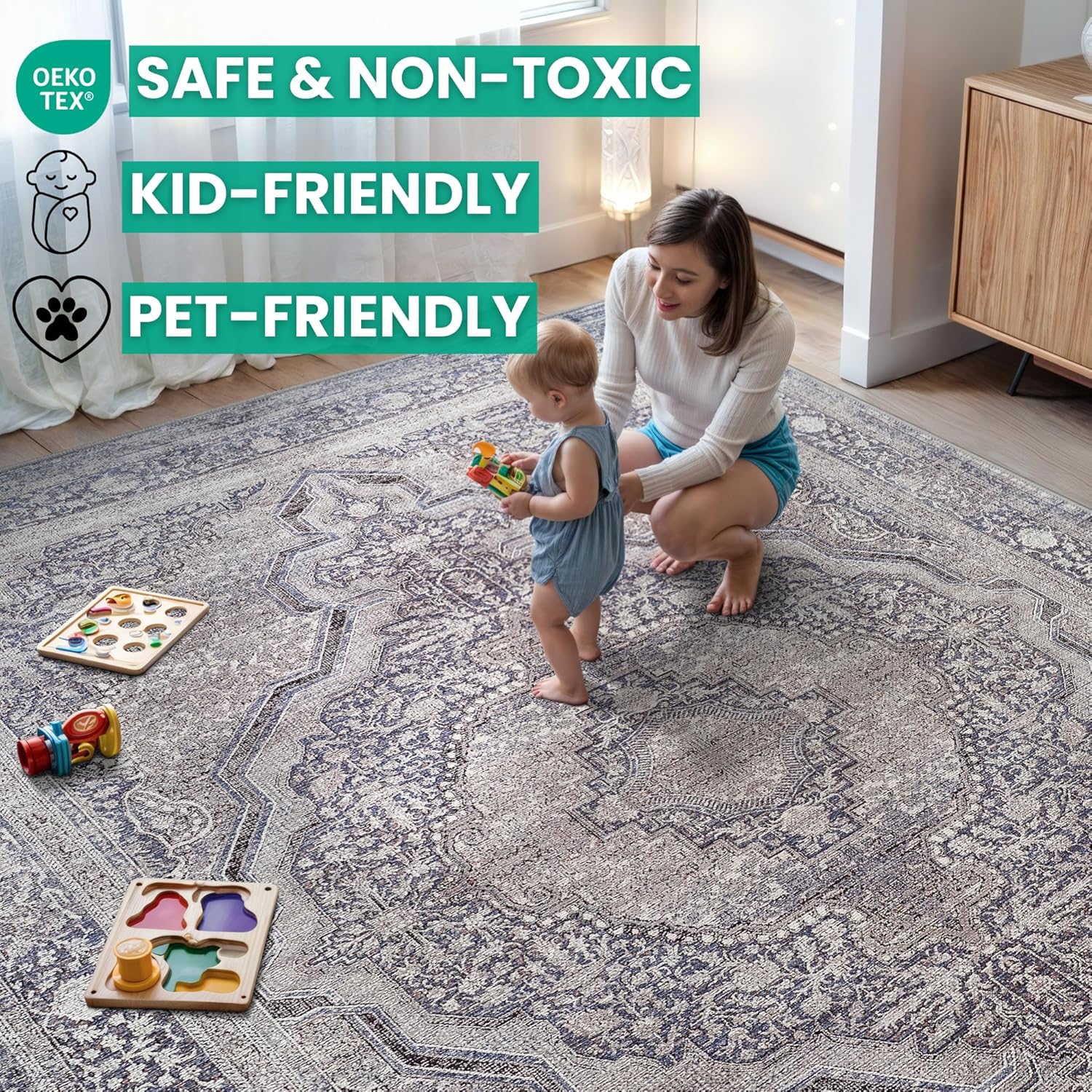 • EASY TO SETUP AND NON-SLIP: This one-piece machine washable rug with non-slip backing attached eliminates any additional setup. Simply unfold and lay flat upon arrival in the desired space. Non-slip backing prevents the rug from moving or sliding without the need for additional rug pad or grippers.
