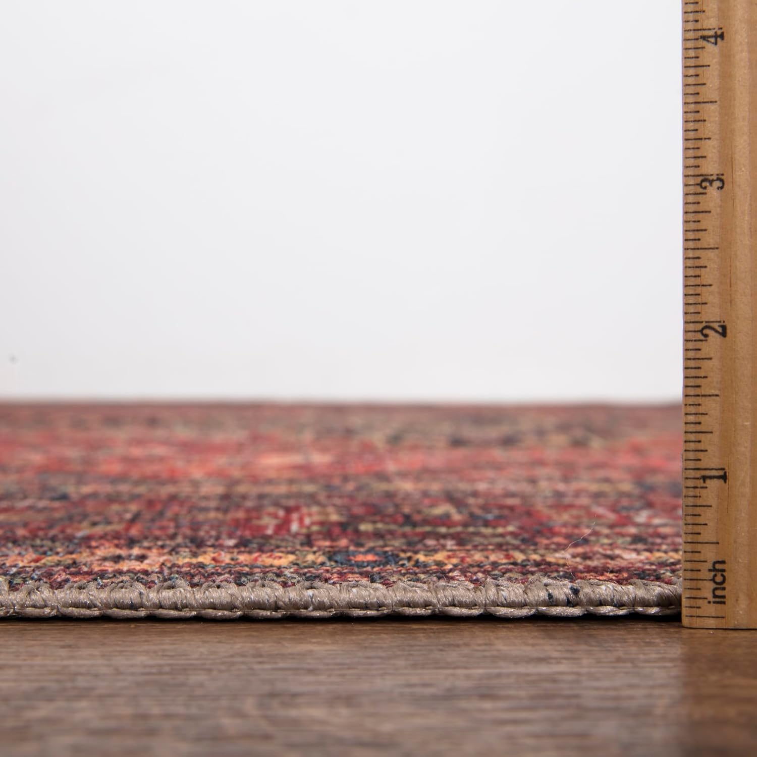 Bloom Rugs Washable Non-Slip 2' x 3' Rug - Red/Teal Blue/Yellow Traditional Medallion Area Rug for Living Room, Bedroom, Dining Room, and Kitchen - Exact Size: 2' x 3'