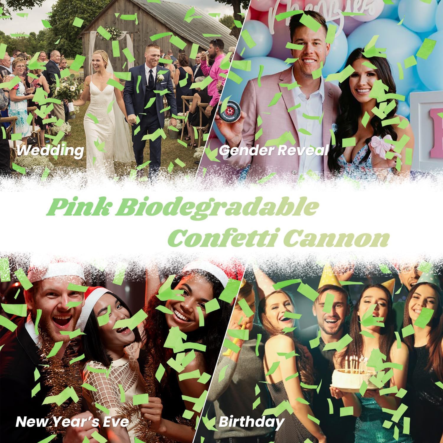 • 【Safe & Easy to Use】Our Green biodegradablel confetti cannon kit contains Green paper confetti are friendly, non-toxic. Biodegradable party poppers confetti shooters work well indoors and outdoors easy to clean and 100% safety, you and your guests can enjoy confetti cannon for your celebrations party.Just give each confetti cannon a hard twist and let the magic happen!