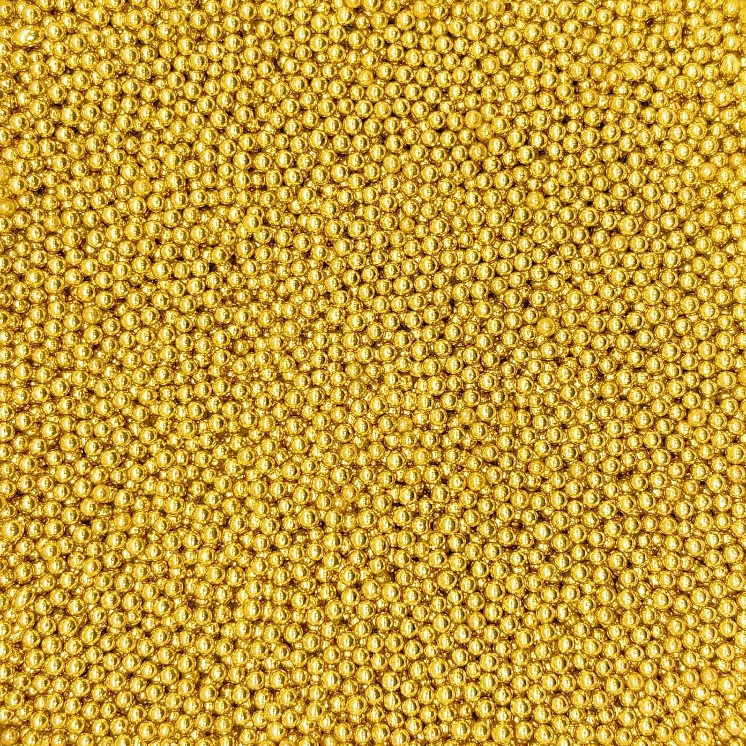 Dynastang 2mm Super Gold Pearls Sprinkles Edible Pearls Cake Decorating Stars Cake Decorations Cupcake Toppers Cookie Decorating Perfect for Cakes, Cupcakes, Desserts Toppings 3OZ