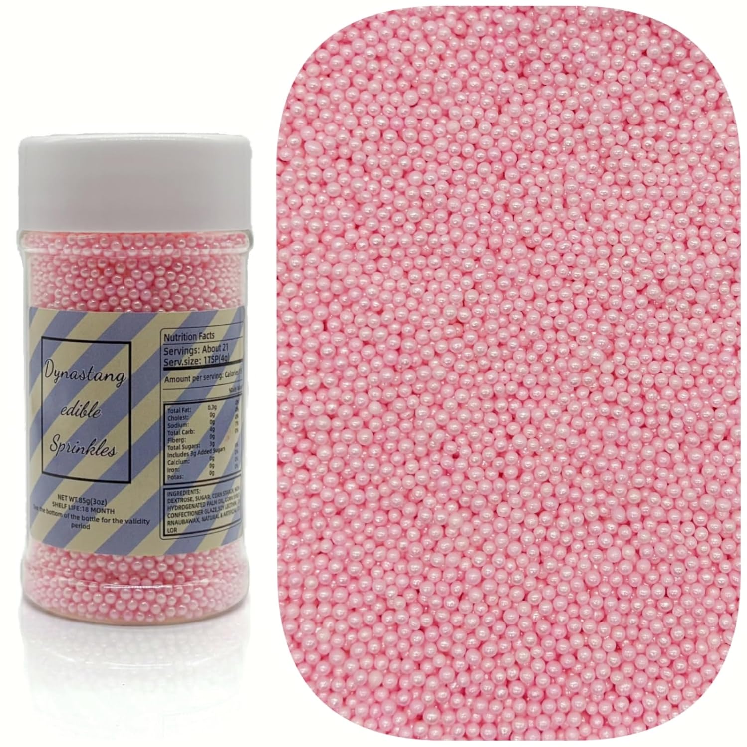 Dynastang 2mm Pink Pearls Sprinkles Edible Pearls Cake Decorating Stars Cake Decorations Cupcake Toppers Cookie Decorating Perfect for Cakes, Cupcakes, Desserts Toppings 3OZ