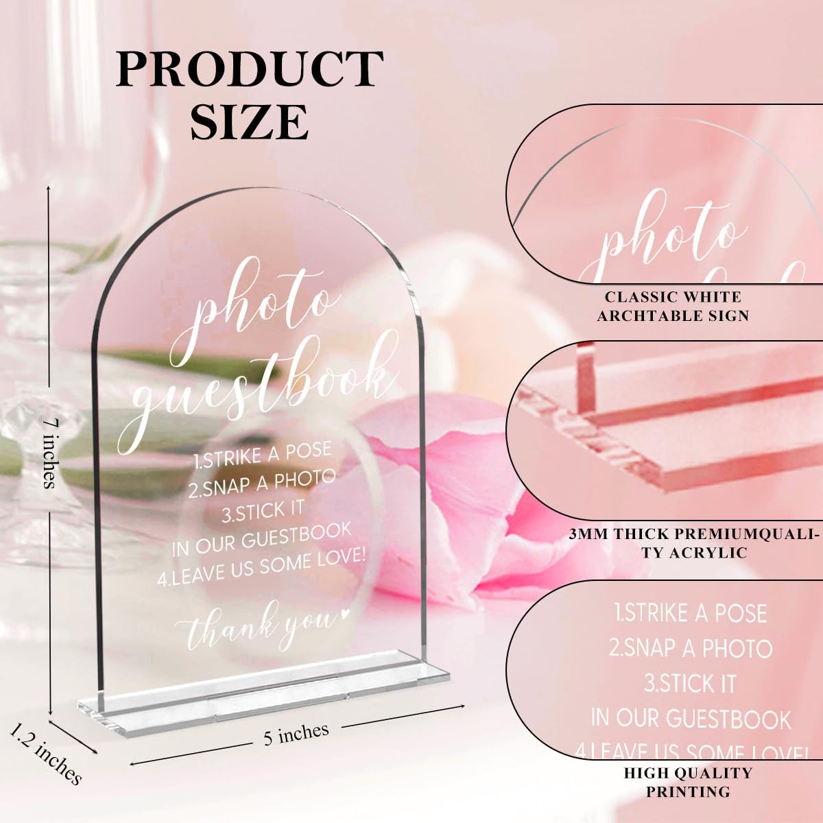 Wedding Sign,Please Sign Our Guestbook Sign,Wedding Sign for Ceremony and Reception, Arch Acrylic Wedding Signs, Wedding Decorative Signage For Table Decor 5 x 7 Inch (White)