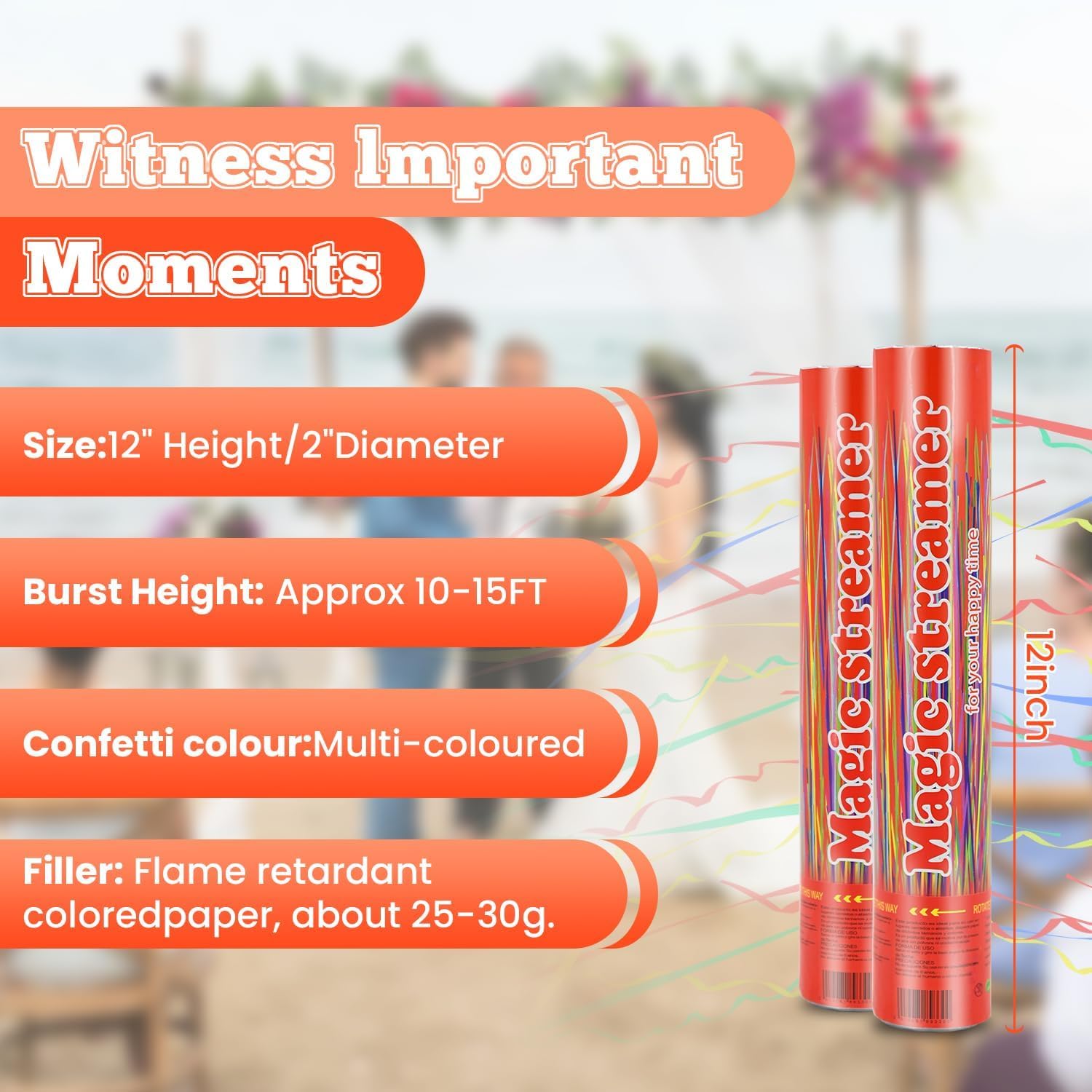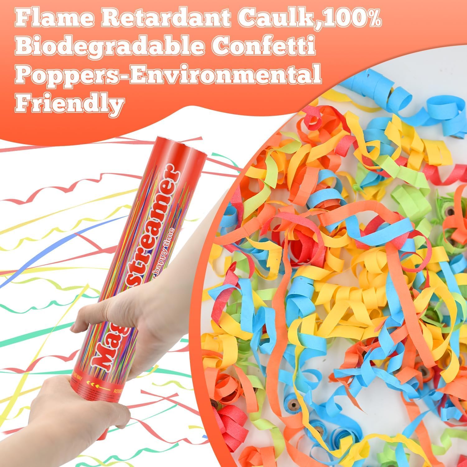 • 【12 Inch Multicolor Confetti Cannon】100% paper confetti poopers can break down organically and non-toxic. Multi-color streamer popper confetti cannon are both green and easy to clean, multicolor party poppers confetti shooters work well indoors and outdoors.