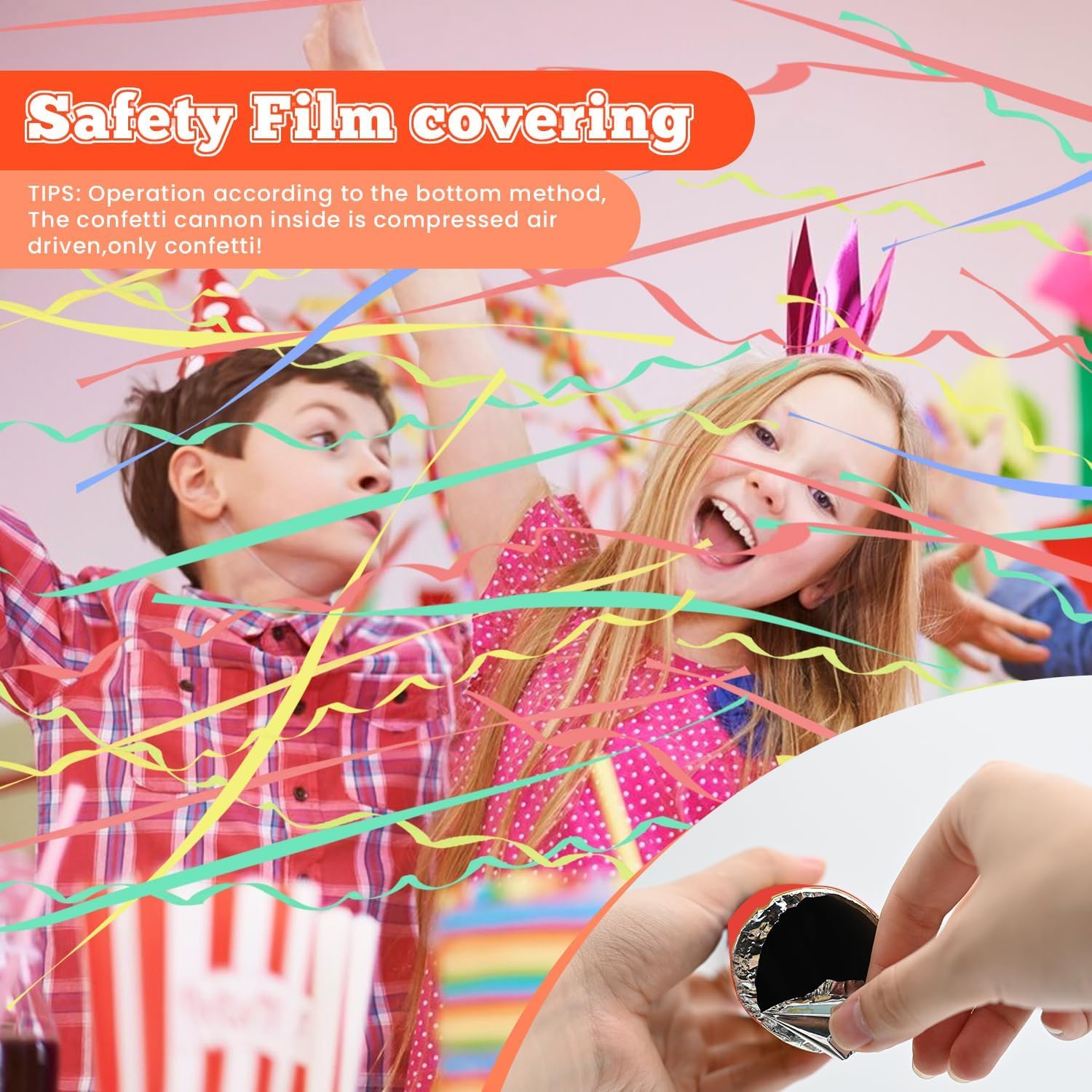 • 【Easy Use Confetti Poppers】Tear off the bottom packaging paper of confetti cannon, simply twist the bottom compressed air device, streamer poppers shooting multicolor streamer confetti papers up to 15-20 feet, leaving them to dance and twirl in the air. Poppers will shoot with a loud [POP] that will guarantee to get everyone's attention.(Point upwards away from people and twist to shoot)