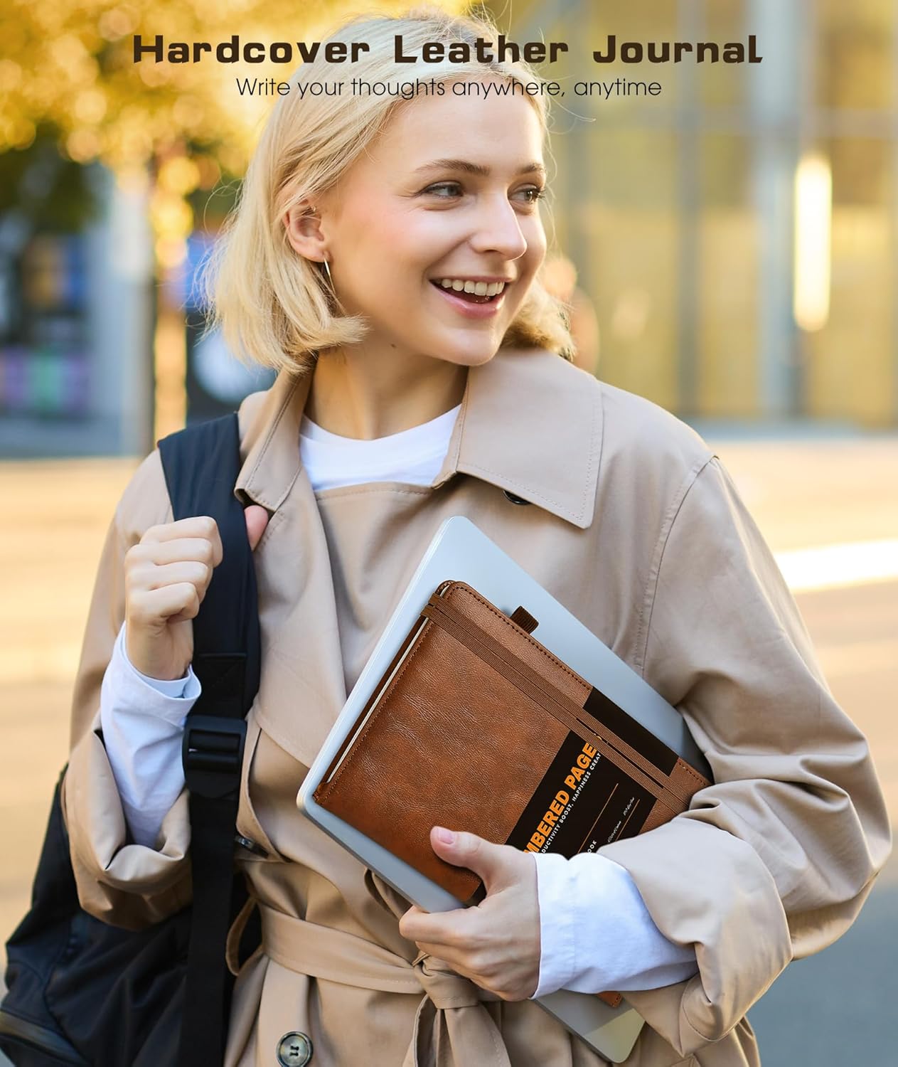 • 【Wide Usage & Ideal Gifts】The leather bound journal is ideal for men women, perfect for business, school, office, home, work, college, students, adults, travelers, scientists, and people in many other fields. Suitable for writing, study, daily journals, drawing, travel, diary notebooks or for taking notes in college classes. Whether it's a birthday, anniversary, or graduation, Mothers Day,Fathers Day,Valentine's Day, Christmas, Halloween, New Year, this notebook will make an excellent gift.