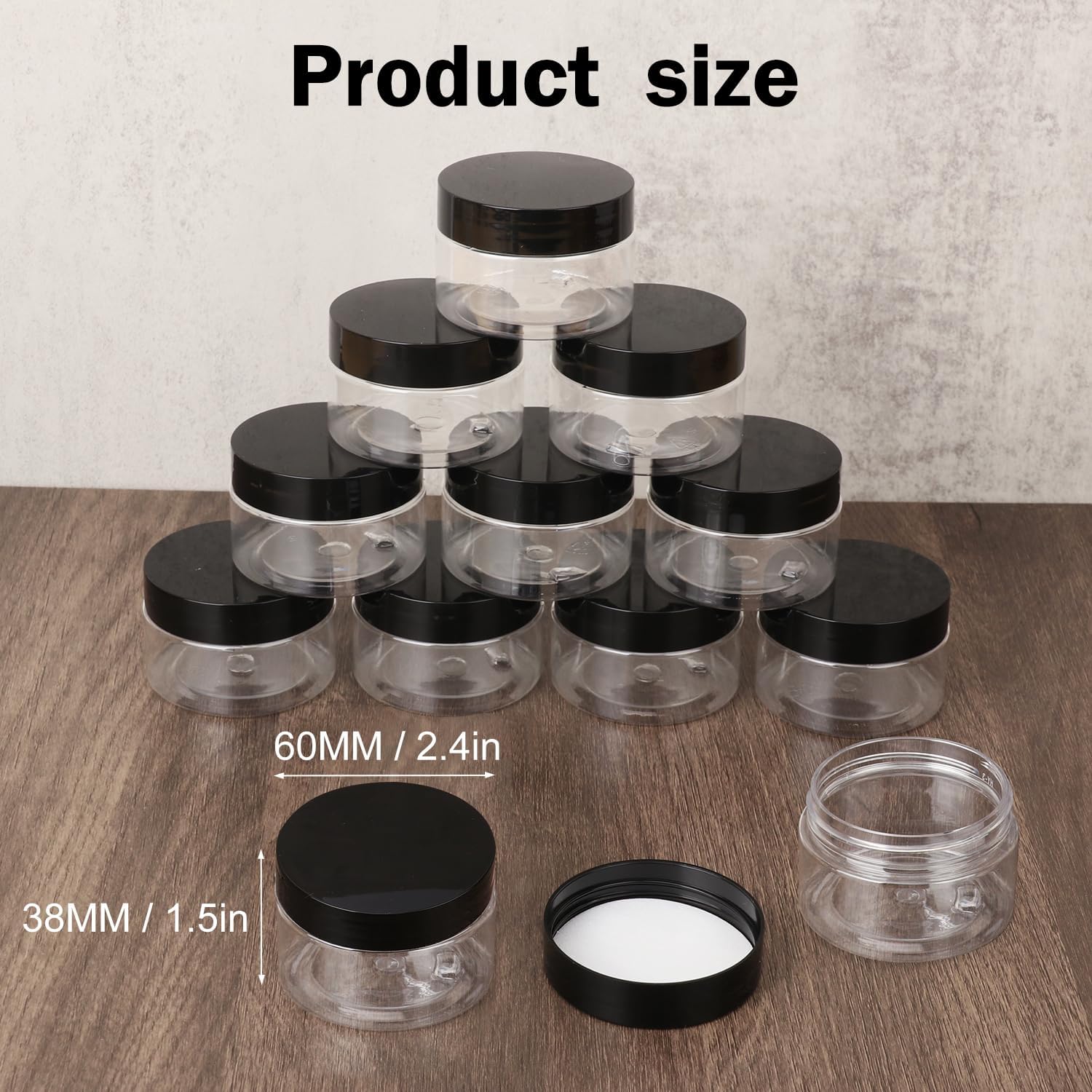110 Packs 2 OZ Transparent Plastic Jars with black Lids, Body Butter Containers, Cosmetic Containers jars for Kitchen Ingredients, beads, sequins, Lotion, Cream, DIY Crafts and More by KUKLIPJIM.