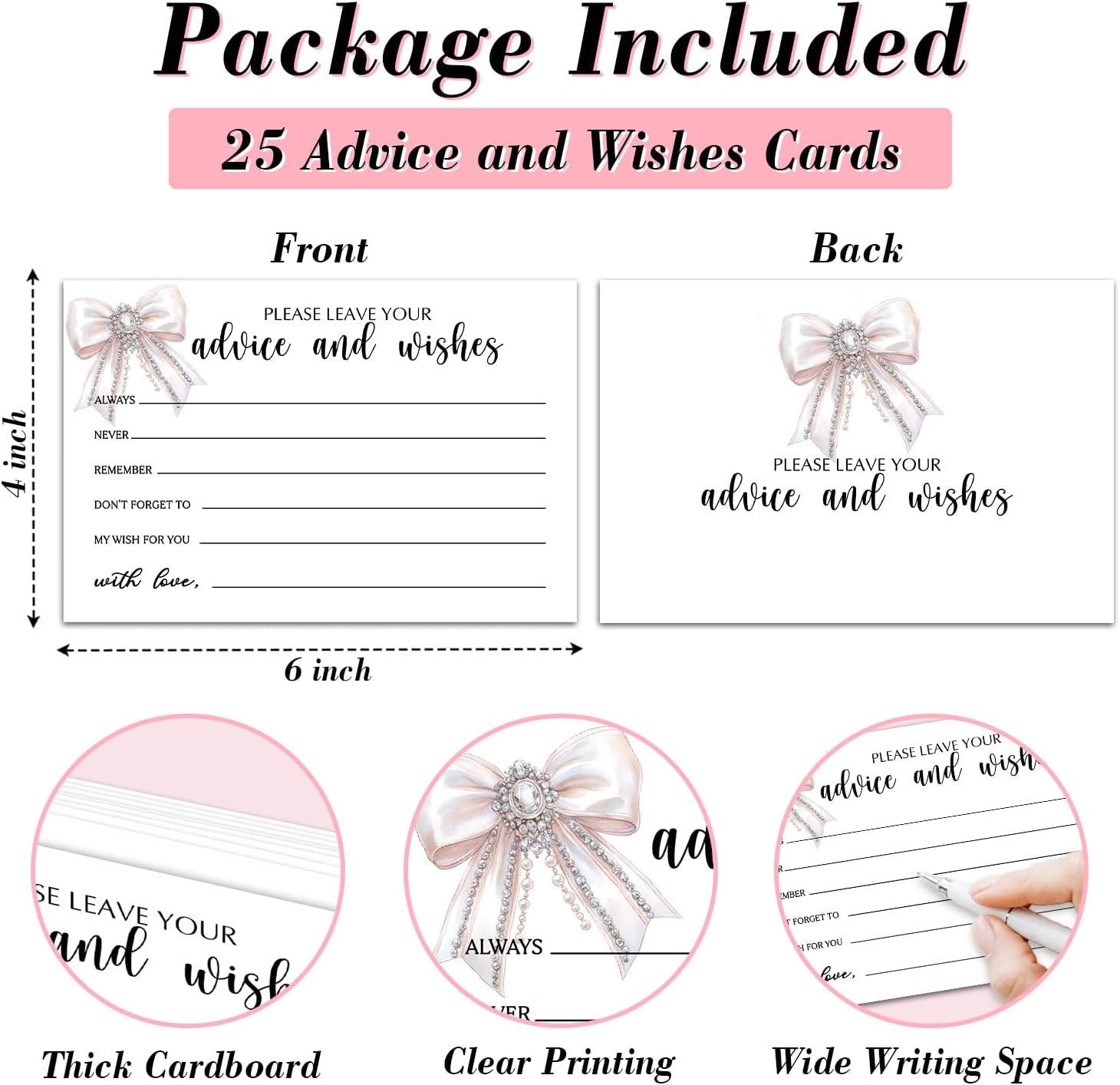 25 Advice and Wishes Cards, White Bow Fill-In Advice Cards for Bridal Shower Wedding Birthday Party Baby Shower Graduation Party, Well Wishes Card for Mr & Mrs Adults, Party Supplies -03