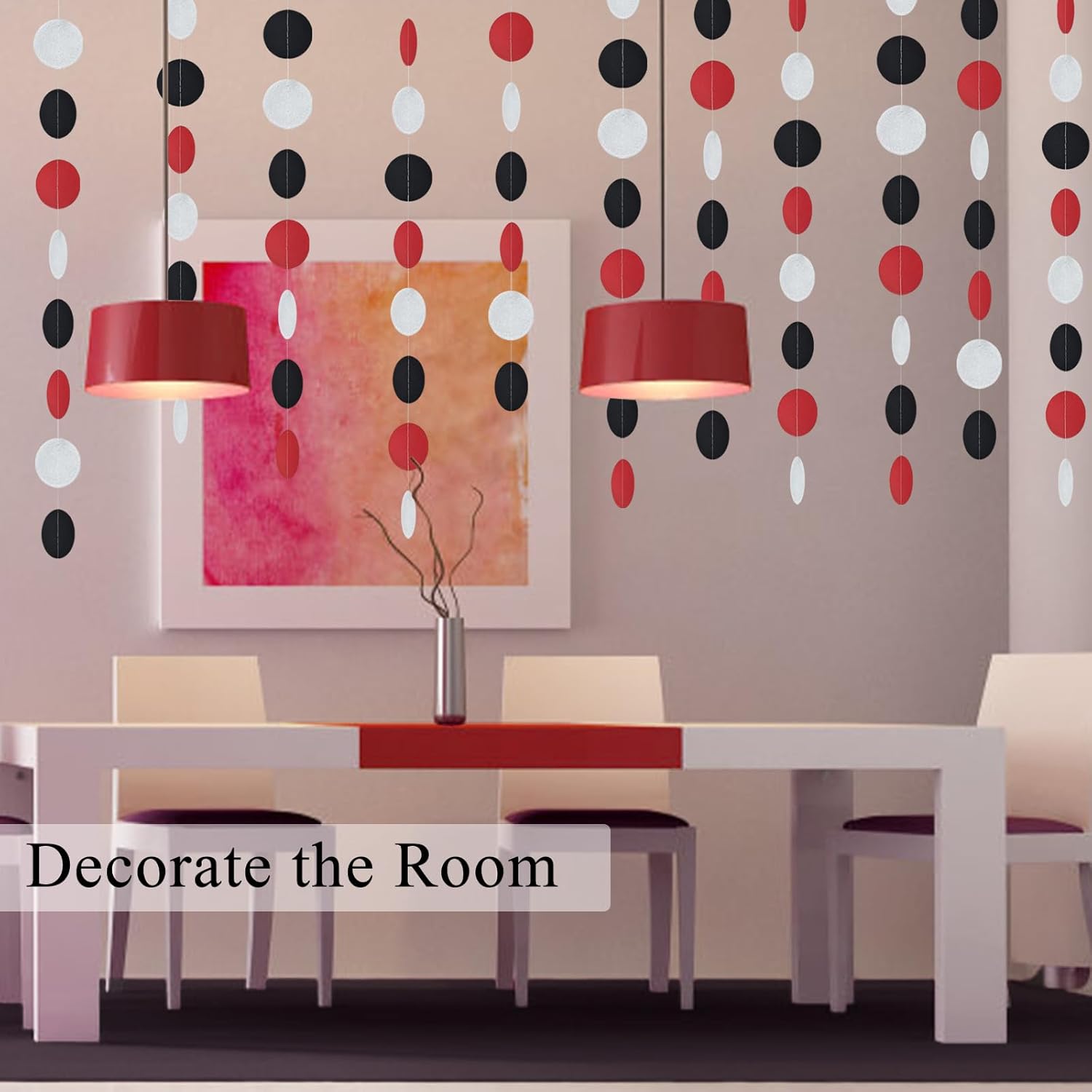 MerryNine Paper Garland 5 Pack, 50ft Glitter Paper Garland Circle Dots Hanging Decor, Banner for Baby Shower, Birthday, Nursery Party Decor (Red Black Silver)