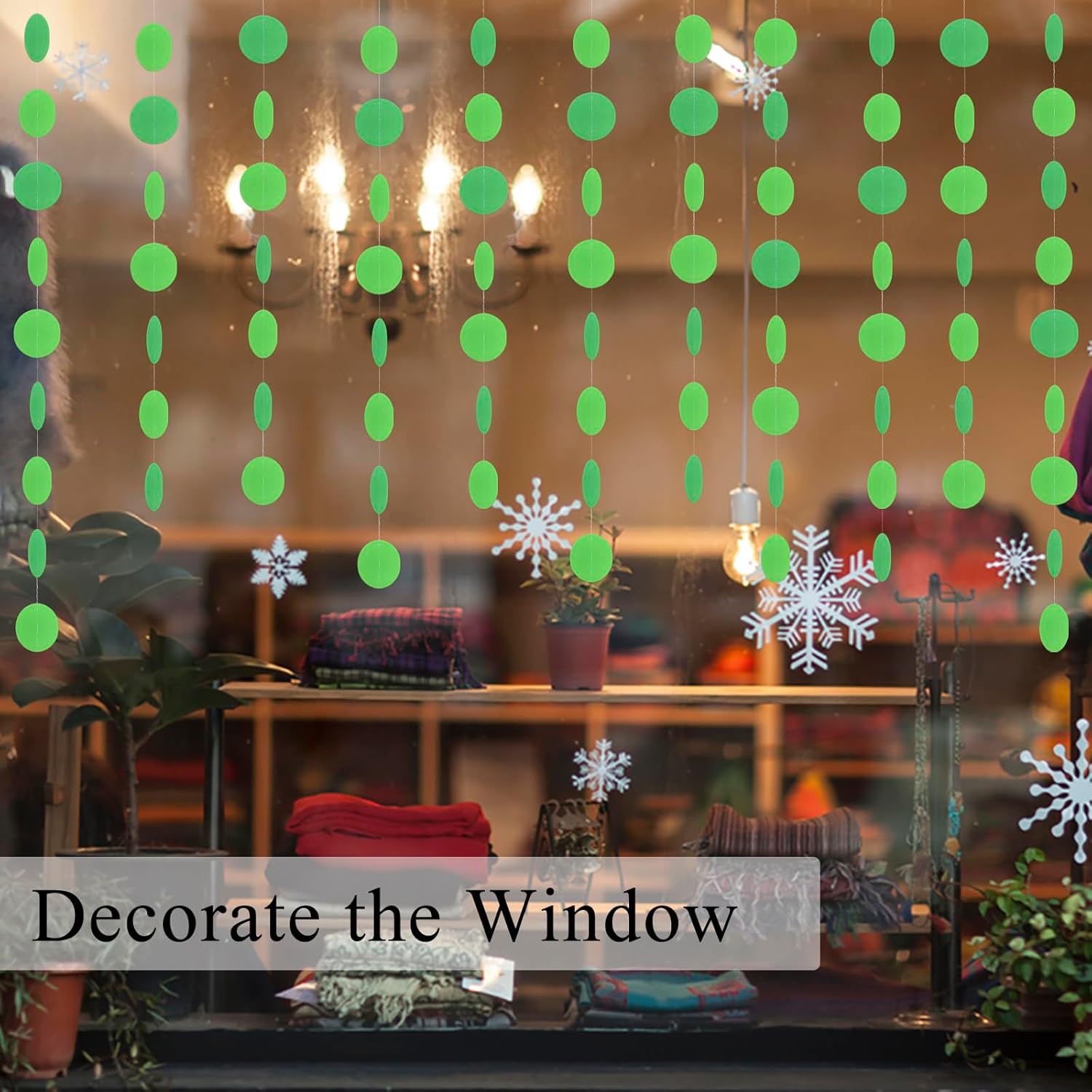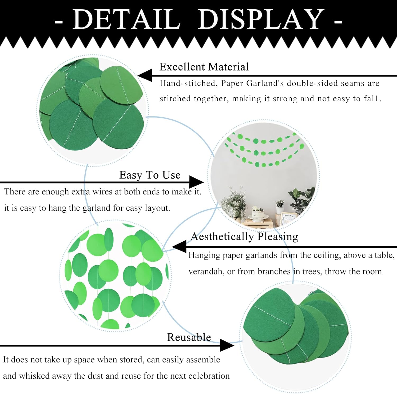 MerryNine Paper Garland 5 Pack, 50ft Glitter Paper Garland Circle Dots Hanging Decor, Banner for Baby Shower, Birthday, Nursery Party Decor (Green)