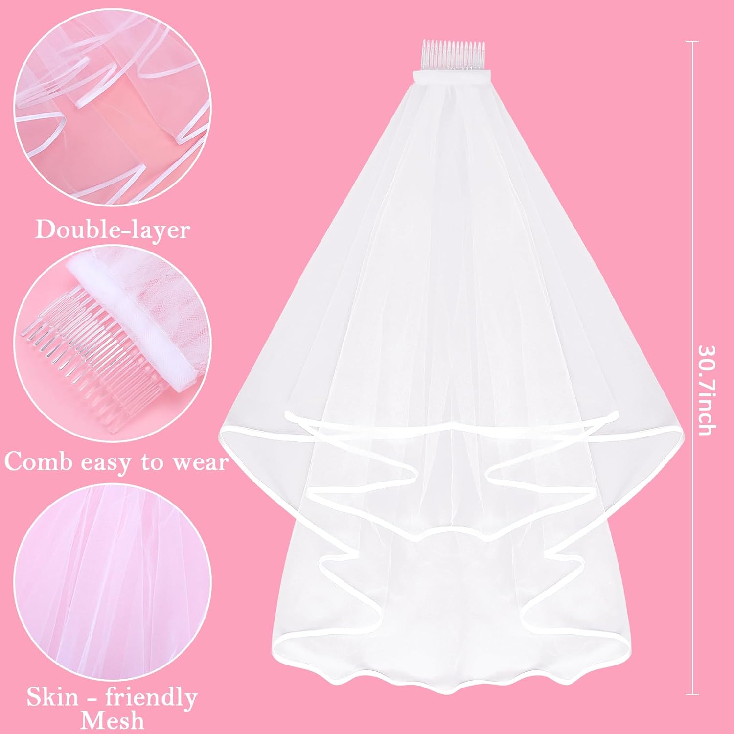 • Cute Veil: Made from soft silk cascades to a length of 30.7", with plastic comb for securing on your head, the edge of the veil is covered in white satin, adding a real touch of sophistication, and perfect length for your bachelorette or wedding.
