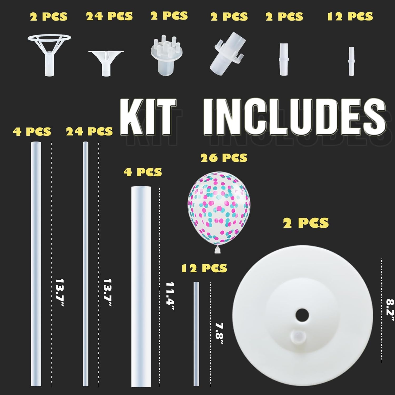 • ★Party Upgrade - These latex balloons includes 26pcs , 2 Sets of Balloon Stand Kits, Includes 44 Unconnected Balloon Sticks, 24 Cups, 2 Big Cups, 4 of Which Are Tube Connectors, 12 Mini Union Joints,2 Union Joints,26pcs Balloons,2 Base.Each Balloon Stand Comes in 2 Different Height Sizes.Perfect Size for Table&Ground.