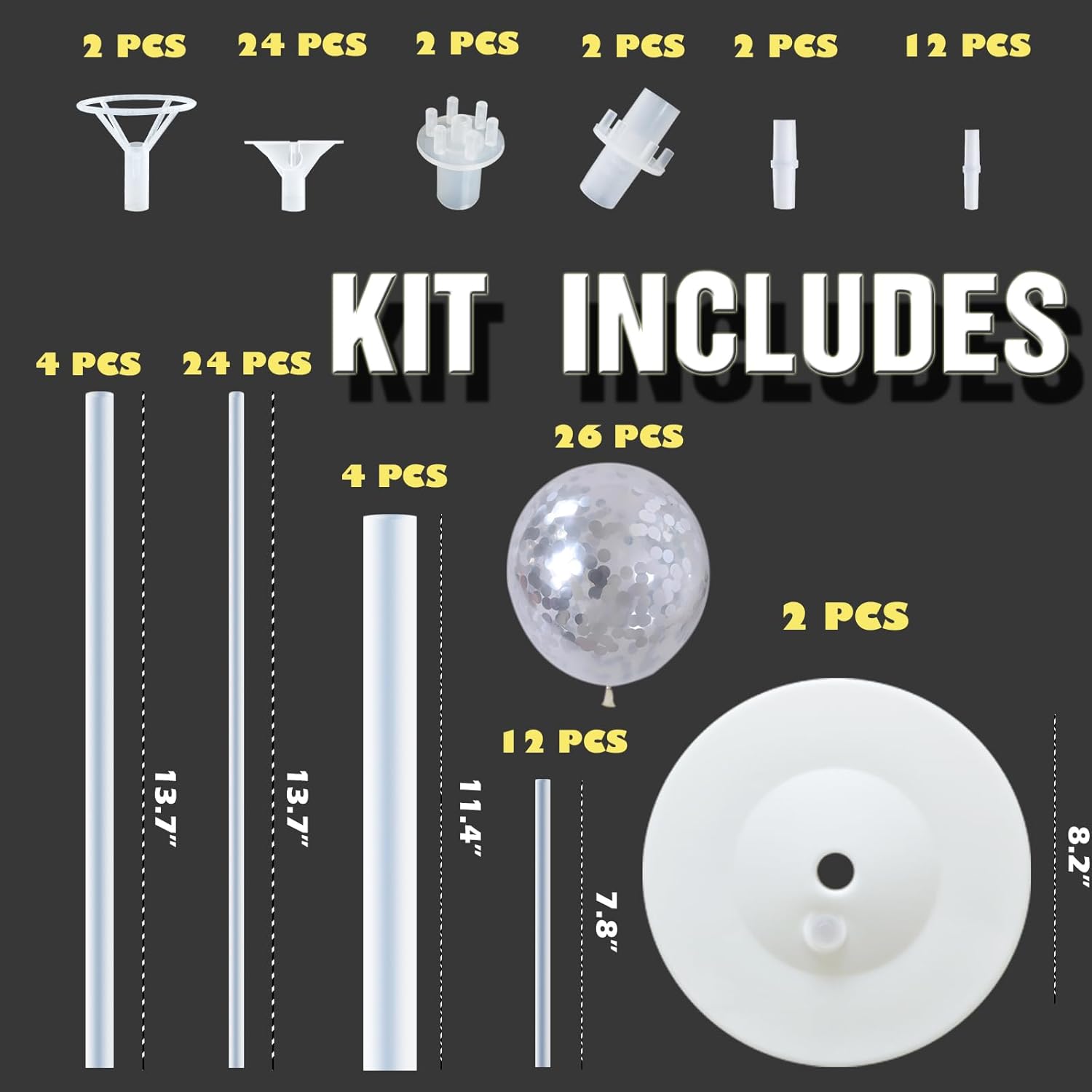 • β˜…Party Upgrade - These latex balloons includes 26pcs , 2 Sets of Balloon Stand Kits, Includes 44 Unconnected Balloon Sticks, 24 Cups, 2 Big Cups, 4 of Which Are Tube Connectors, 12 Mini Union Joints,2 Union Joints,26pcs Balloons,2 Base.Each Balloon Stand Comes in 2 Different Height Sizes.Perfect Size for Table&Ground.