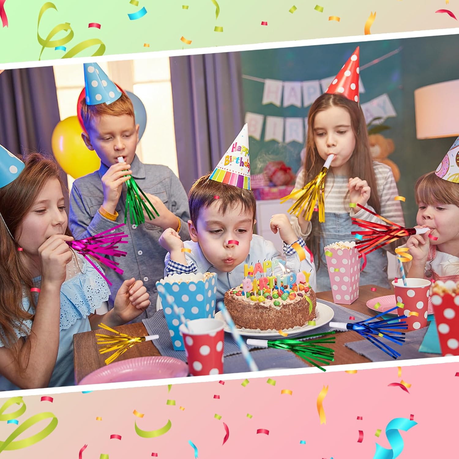 • BIG HIT AT THE PARTY :Our metallic fringed birthday blowers are a must have party accessory, creating a fun and festive atmosphere. Watch as your guests dance along to the rhythm of celebration