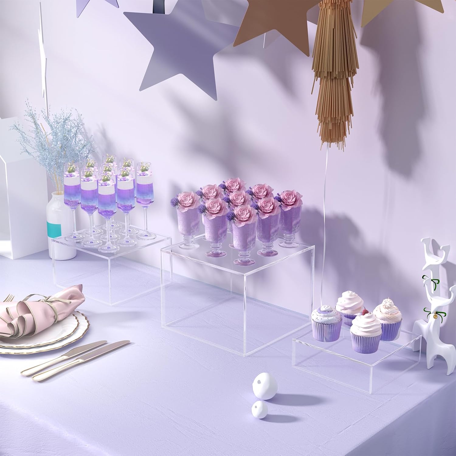 Buffet Risers, Food Display Risers for Party, Crystal Clear Acrylic Risers Display Stand for Buffet Table, Catering Displays for Dessert, Cube Box Nesting Riser with Hollow Bottom