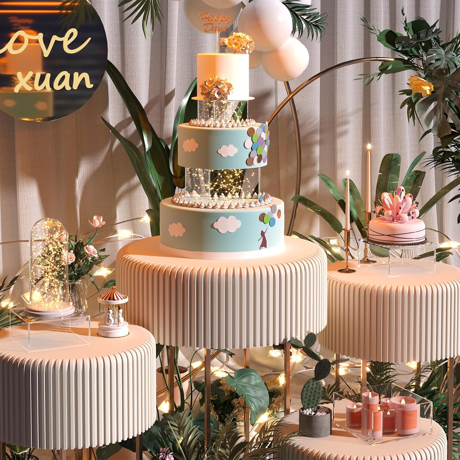 • 【Wide Applications】PITBVO buffet risers could be used as cake stand, jewelry risers, figures display stand, catering displays, makeup organizer and risers for décor. Different acrylic cube box height organize buffet table or dessert table well and create beauty look and good memories