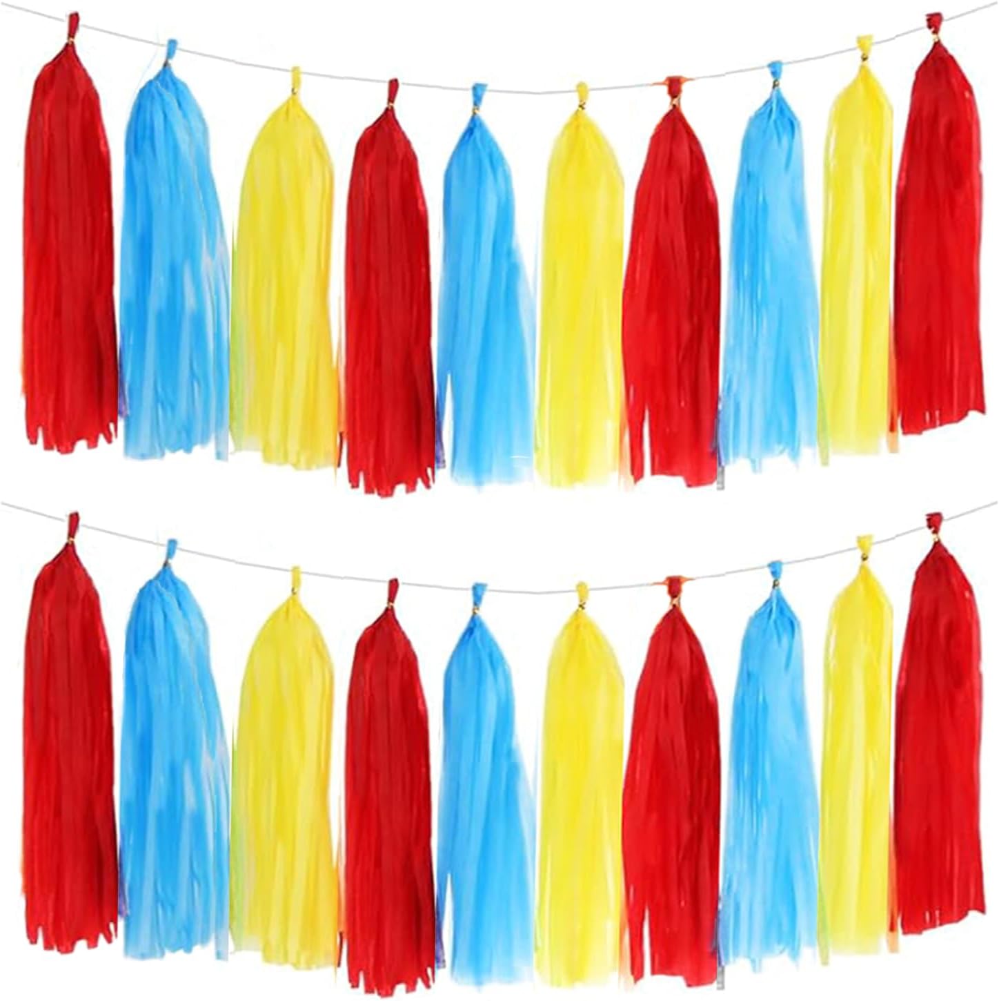 Aimto Red Blue and Yellow Tassel Garland Banner Paper Tassels for Party Decorations,Pack of 15
