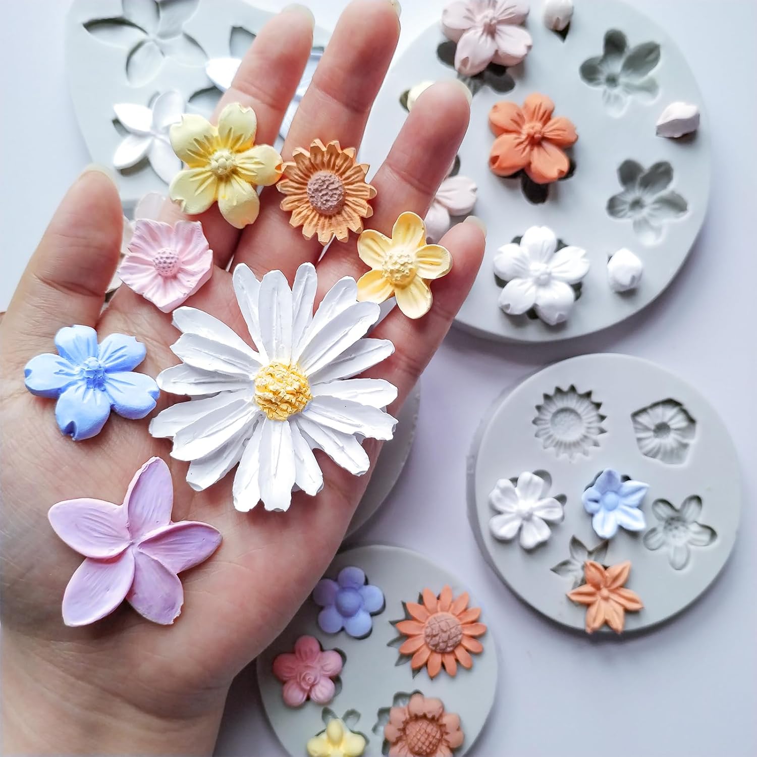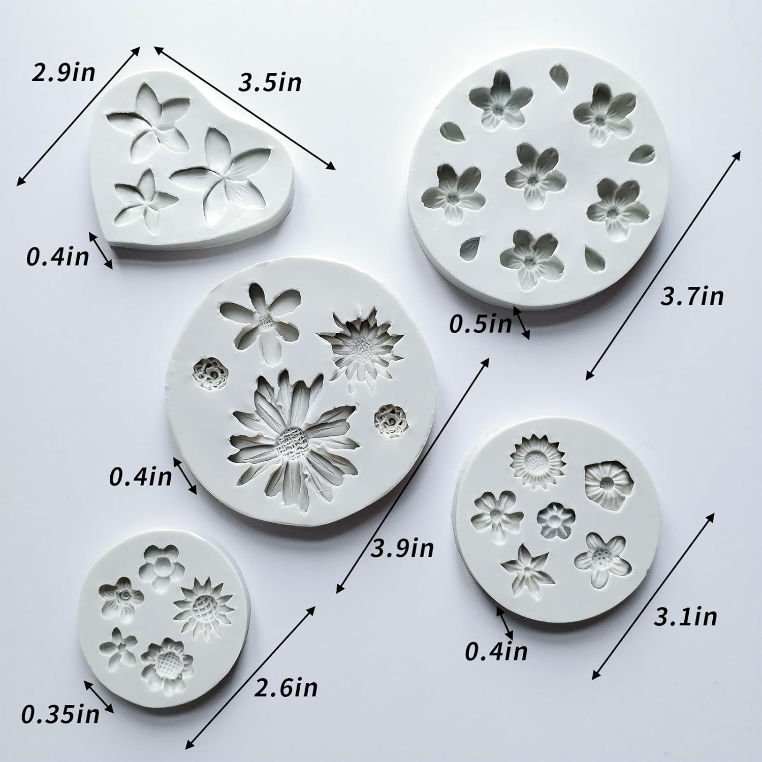 5PCS Flower Silicone Molds, Daisy Flower Fondant Chocolate Jelly Cake Decoration Molds, 3D Floral Resin Candle Soap Wax Polymer Clay Mold, Cute Epoxy Mold for DIY Art Craft Baking Supplies