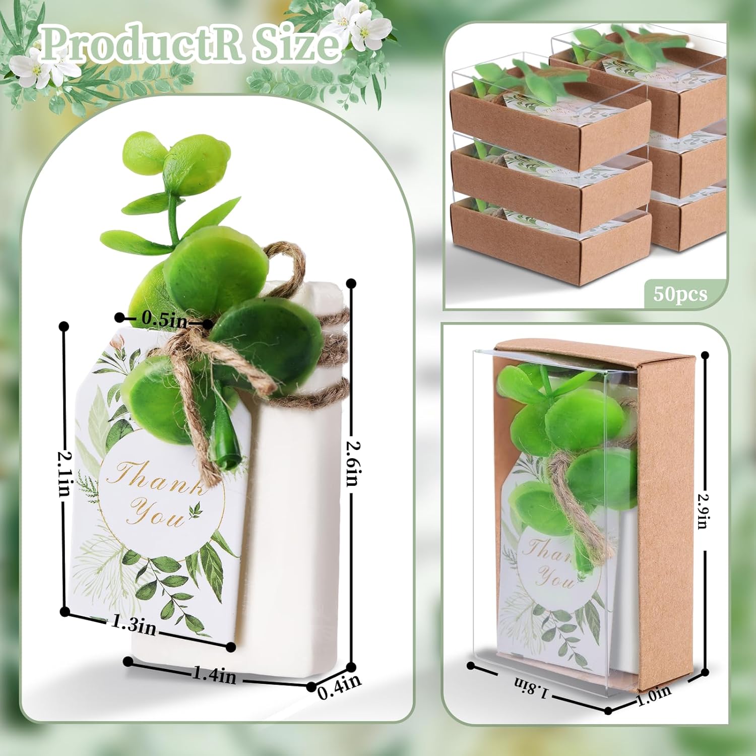 50PCS Handmade Soap Wedding Favor Mini Soap Bars Gifts for Bridal Shower Baby Shower Soap Party Favors for Theme Party Decorations with Mini Dried Flowers Thank You Kraft Paper Packaging Box
