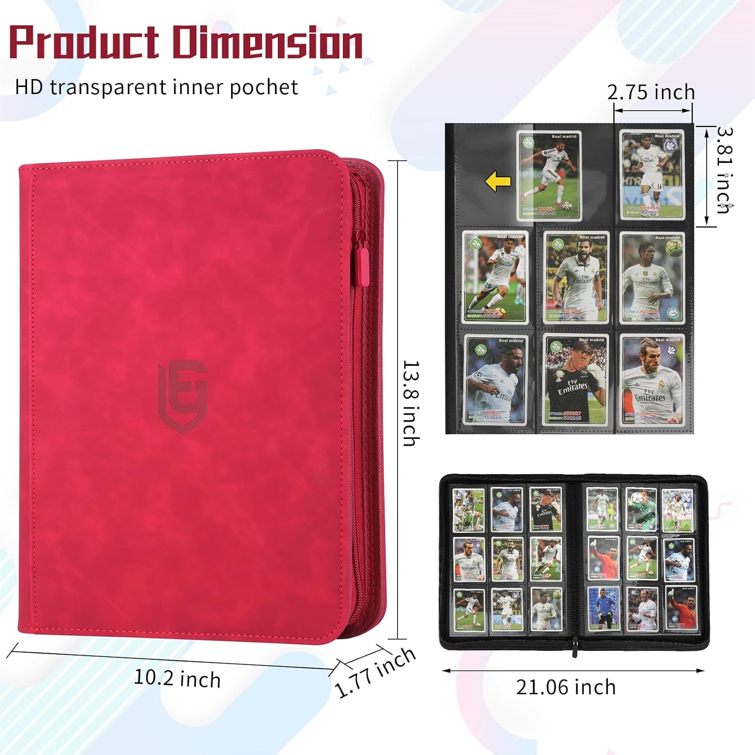 • DETAILED DESIGN:The card binder is made of premium PU leather, water or raindrops will not penetrate, different colors of the trading card binder with different colors of the zip, to meet your personalised needs. Side card pocket prevents cards from spilling out and protects your cards from fading and staining