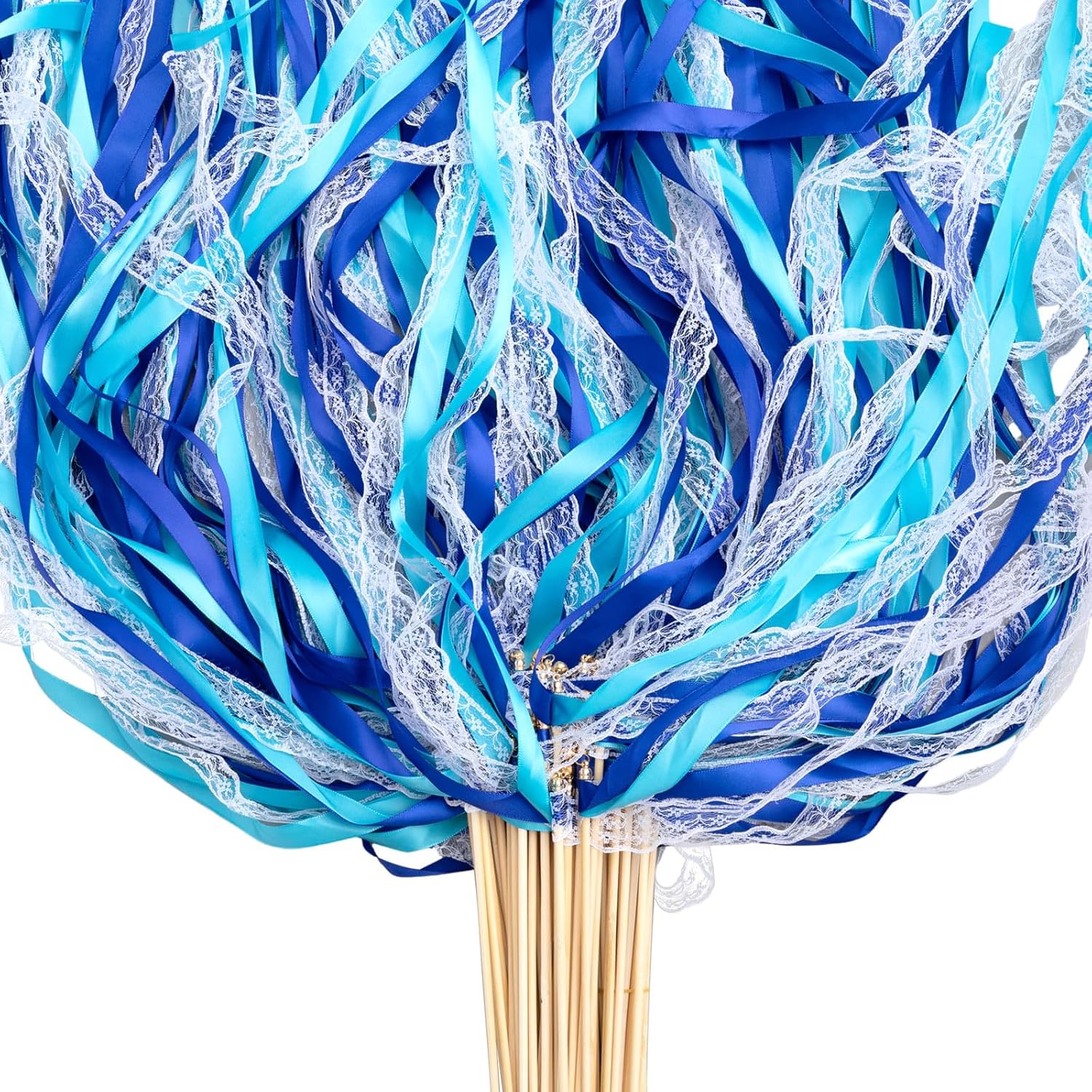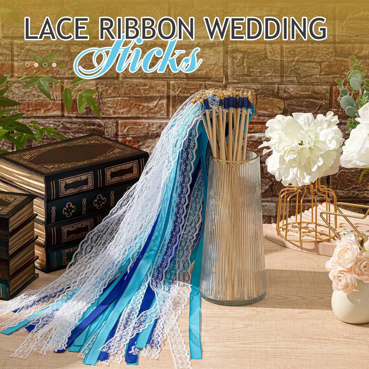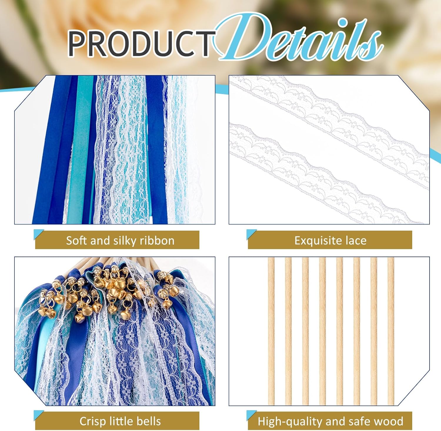 • Large Quantity: the package contains 150 pieces of wedding wands, with dark blue and light blue ribbons, white lace, bells, enough for you to decorate an impressive wedding or party; You can also share them with your family and mates