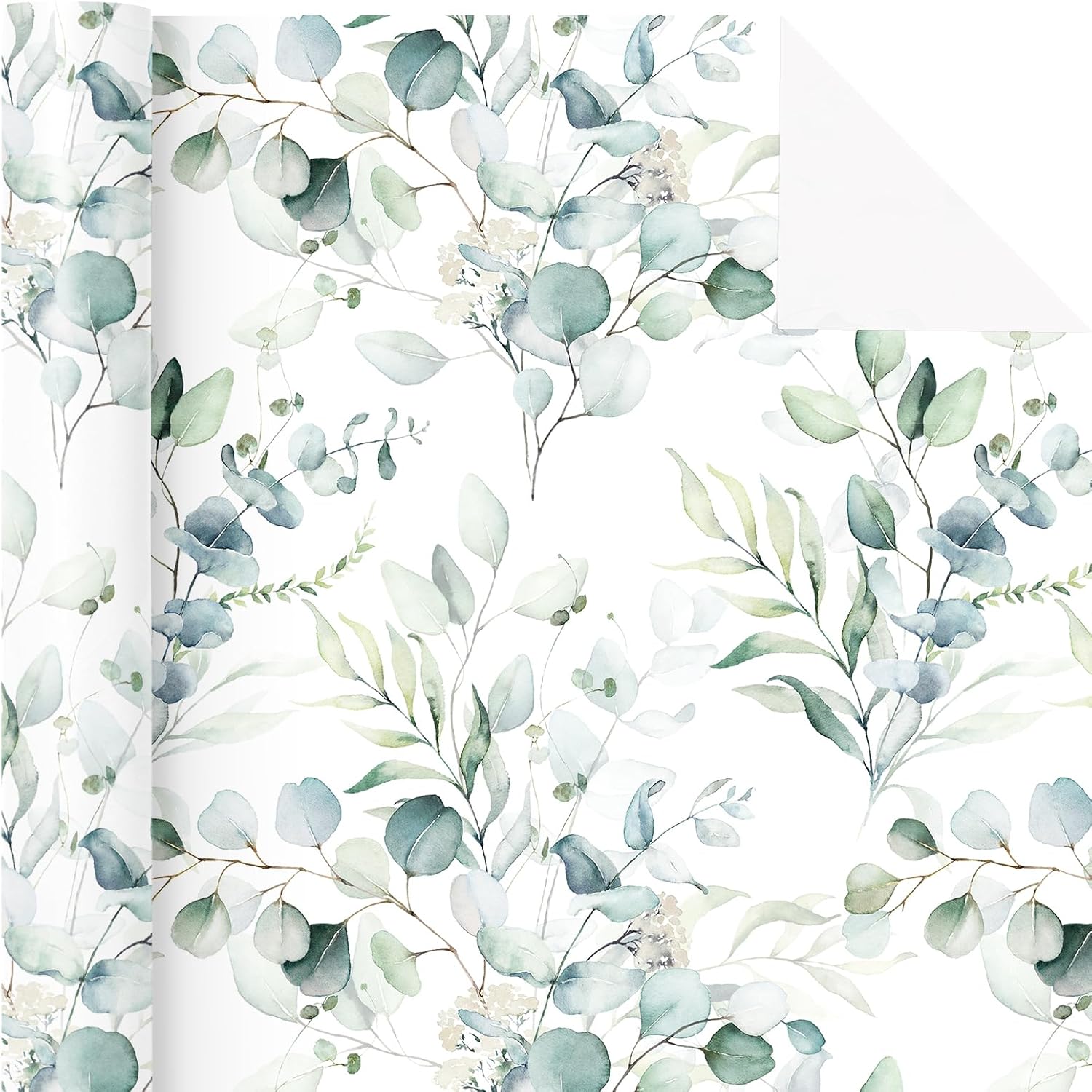 • Exquisite and Natural Design: This wrapping paper features green eucalyptus leaves against watercolor style, creating a refreshing atmosphere, adding a touch of natural beauty to any gift.
