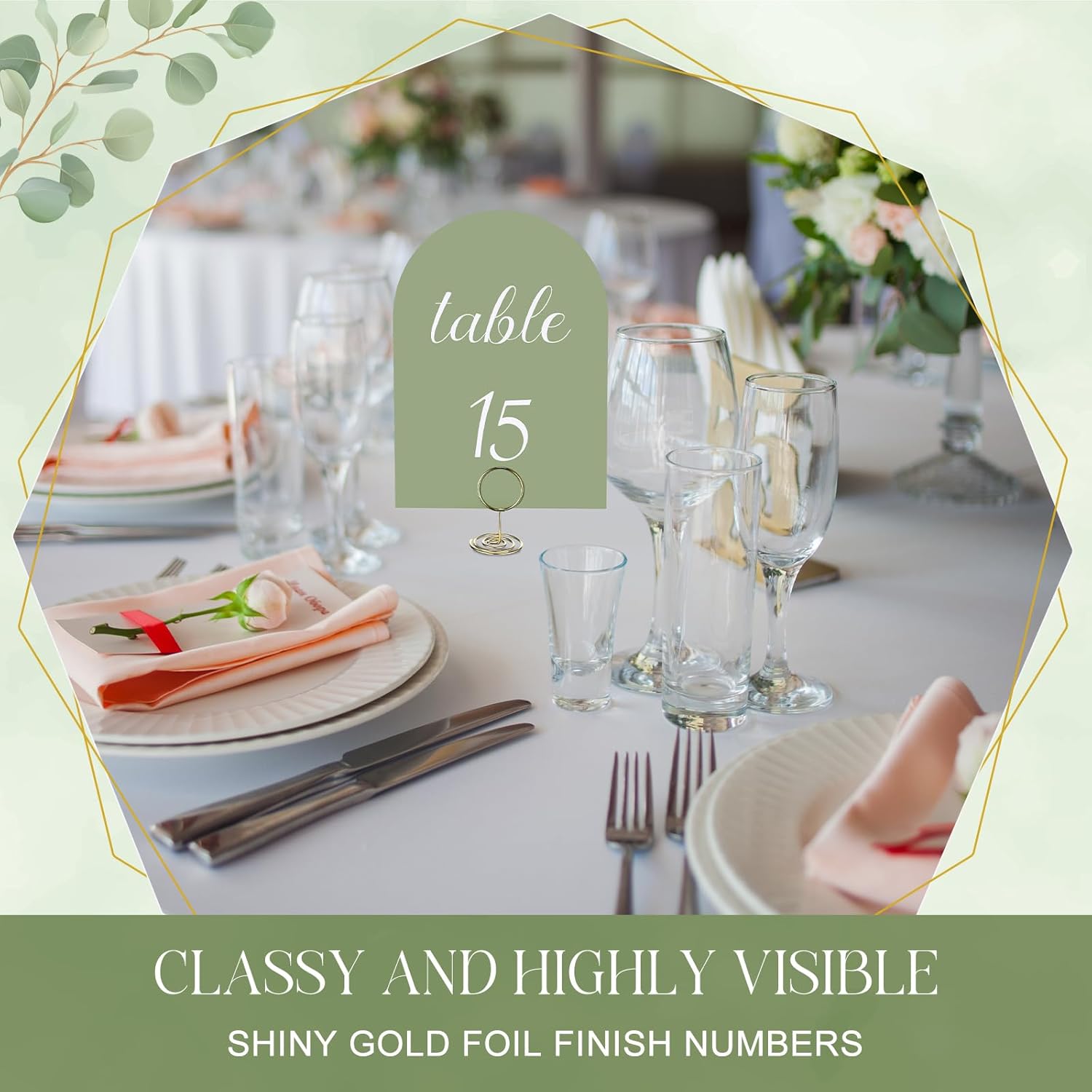 • Quality and Sturdy: wedding table numbers are printed on both sides of quality thick card stock, which can improve visibility and help guests sit down easily while being sturdy; The appearance has a simple arch design, making it timeless and timeless; The matching place card holders are made of solid metal, which can stably display the number card on the table