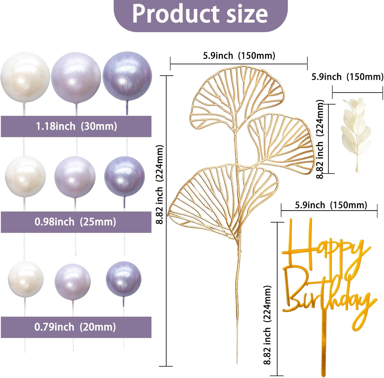 • -Package included: 1Pc Acrylic Cake Topper + 10Pc Grass + 45Pcs Mix Size Balls + 1Pcs Ginkgo Leaf. Size as the picture shows. These Balls Cake Topper Decorations are so chic and funny that make your Graduation party a big hit.