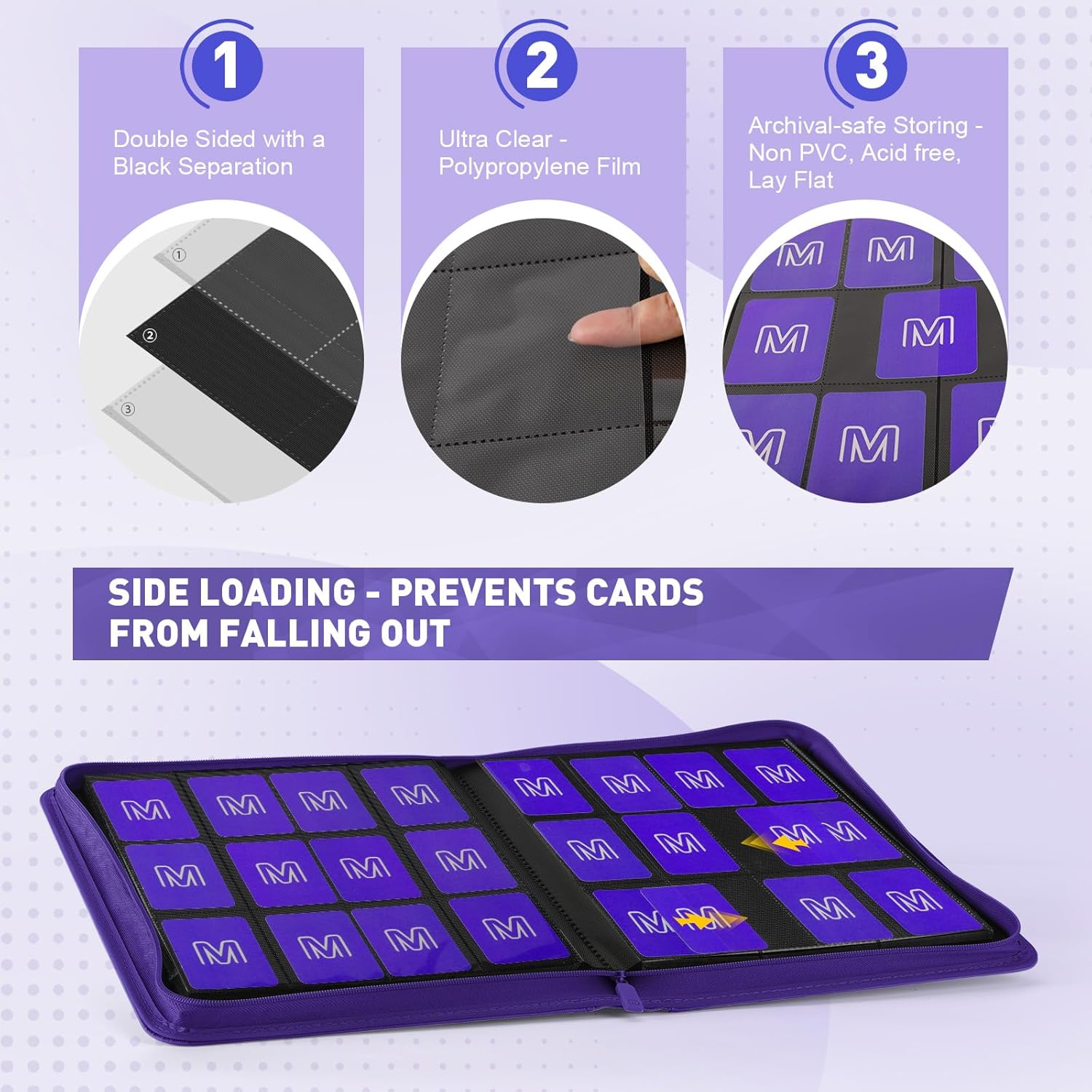 Premium Card Binder 12 Pocket for 720 Pockets Trading Card Binder, PU Zipper Card Collection Album, Sturdy Side-Loading Card Book Holder for MTG, TCG, Game Cards, Sports Cards