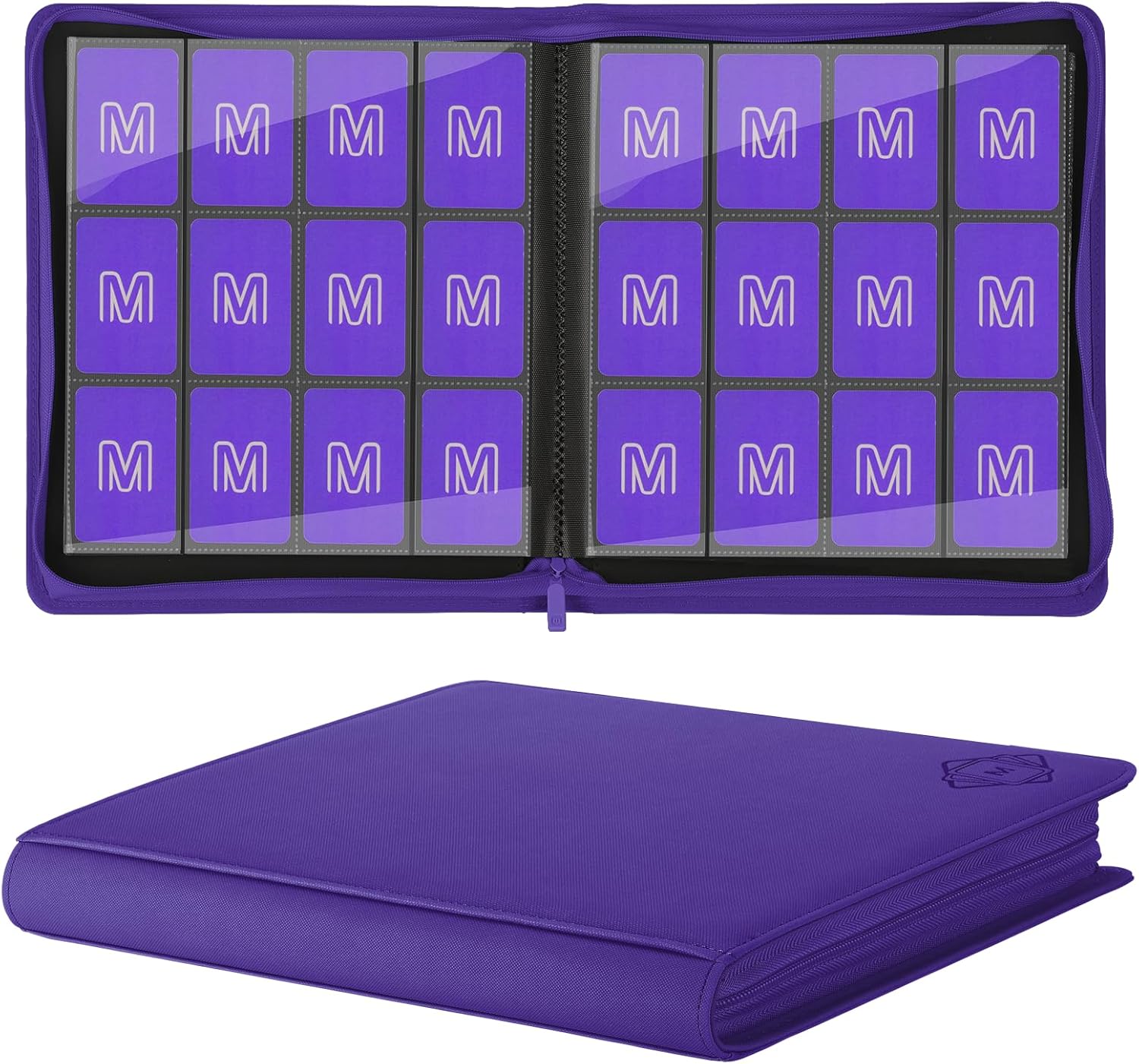 • 【LARGE CAPACITY 】Trading card binder,Holds 720 cards with 30 double-sided 12-pocket pages bound to the spine.this 12 pocket card binder makes your cards tucked away safely and keeps them in mint condition and organized.Making it ideal for Playing cards, baseball, or any trading card collection. With the ability to optimize your collection, this binder is a must-have for any card enthusiast. Pocket Size: 2.7" x 3.7". Well designed to fit sleeved cards for double protection.