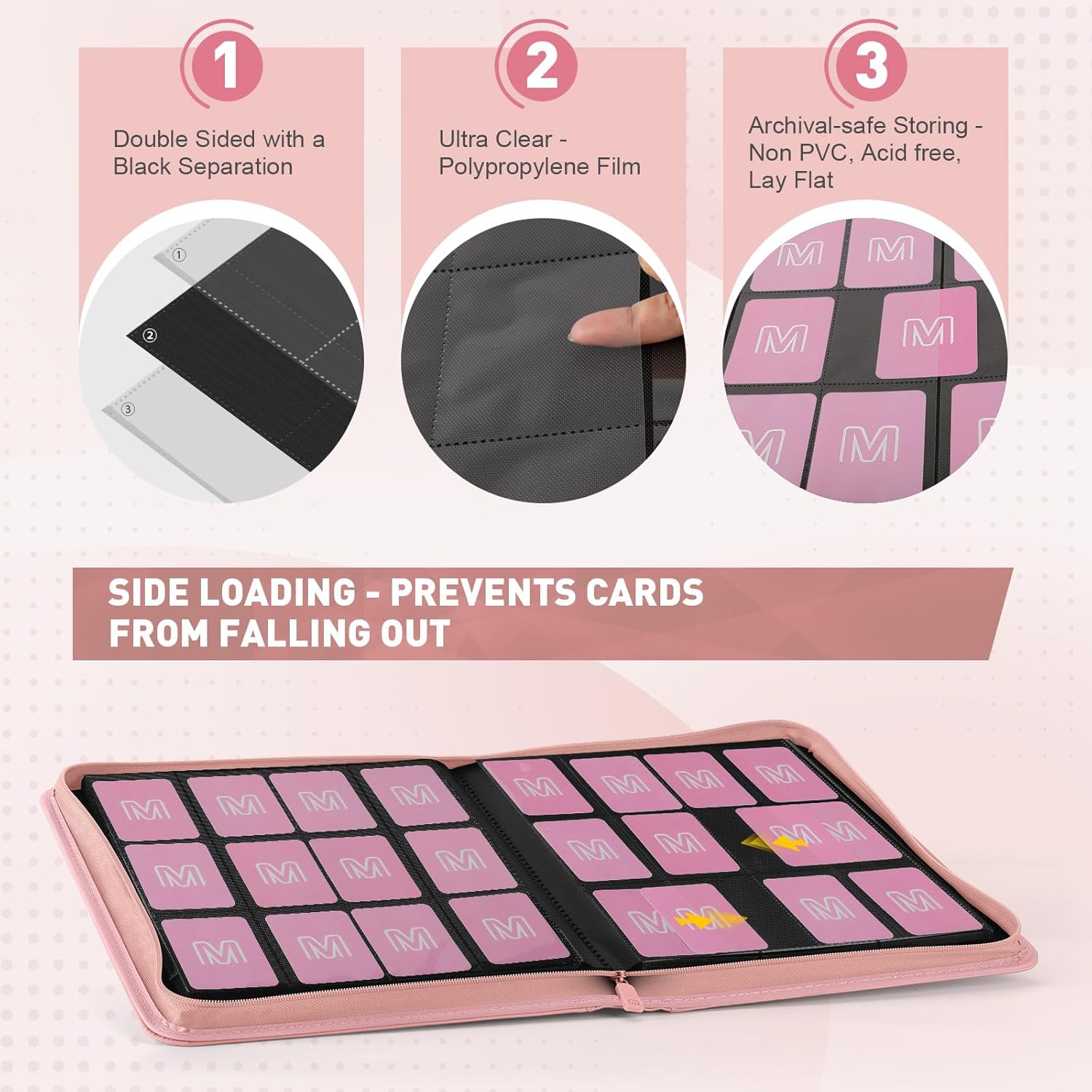 • 【PREMIUM QUALITY MATERIAL】 Card Binder is designed with textured PU leather material finish which is comfortable.this trading card binder is not only stylish but also ensures durability and long-lasting performance.The waterproof and durable card sleeves provide extra protection for your cards, keeping them safe from spills, moisture, and everyday wear and tear.
