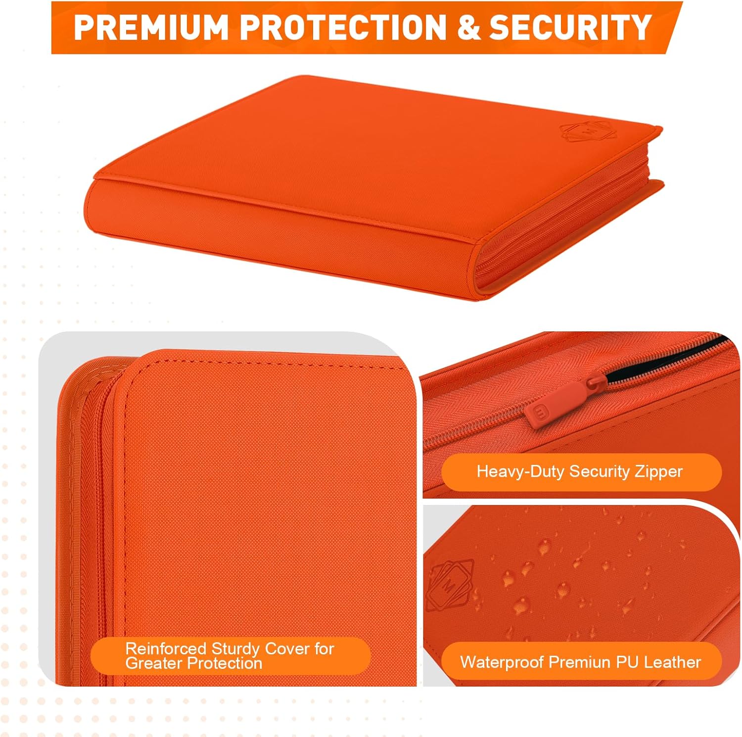 • 【PREMIUM QUALITY MATERIAL】 Card Binder is designed with textured PU leather material finish which is comfortable.this trading card binder is not only stylish but also ensures durability and long-lasting performance.The waterproof and durable card sleeves provide extra protection for your cards, keeping them safe from spills, moisture, and everyday wear and tear.
