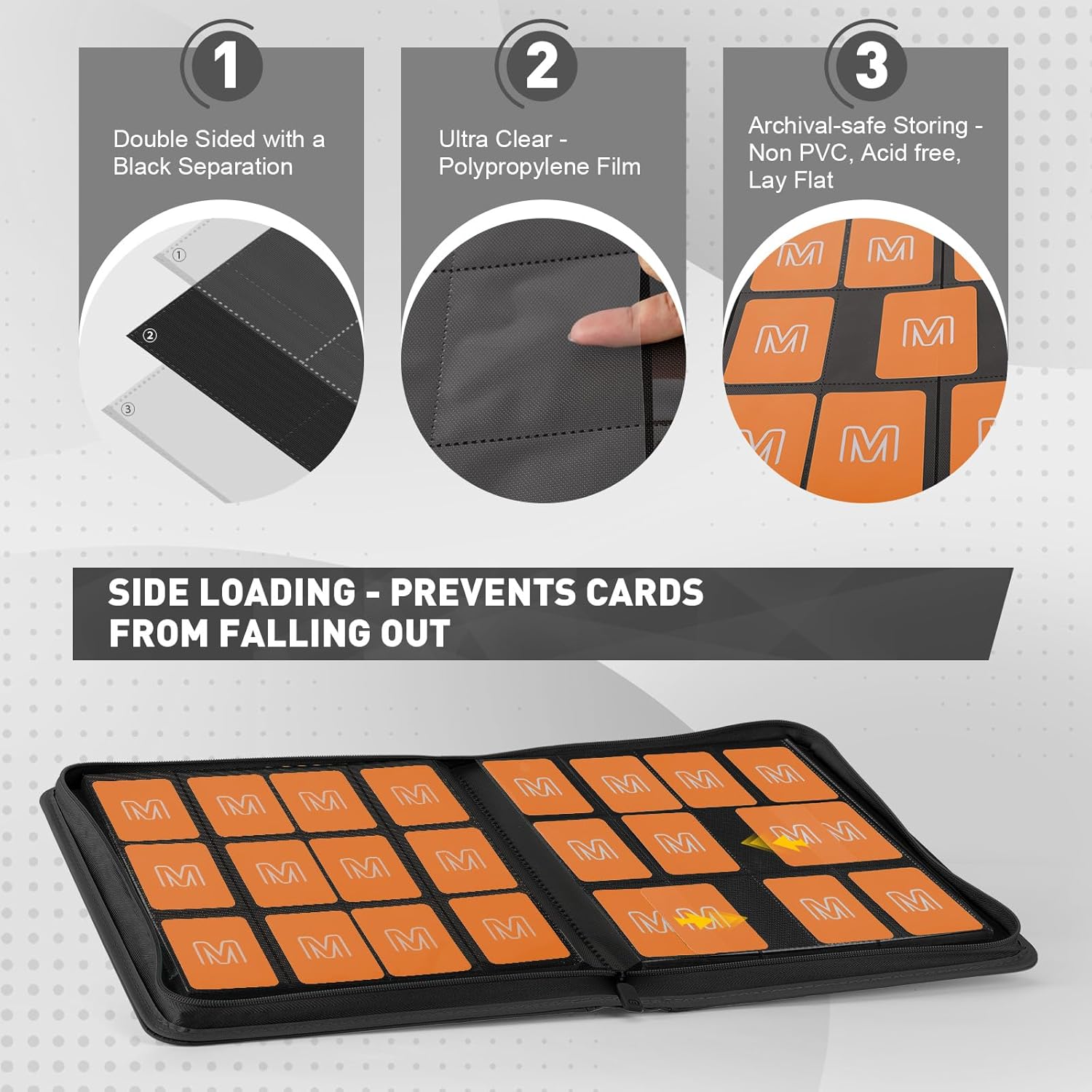 • 【PREMIUM QUALITY MATERIAL】 Card Binder is designed with textured PU leather material finish which is comfortable.this trading card binder is not only stylish but also ensures durability and long-lasting performance.The waterproof and durable card sleeves provide extra protection for your cards, keeping them safe from spills, moisture, and everyday wear and tear.
