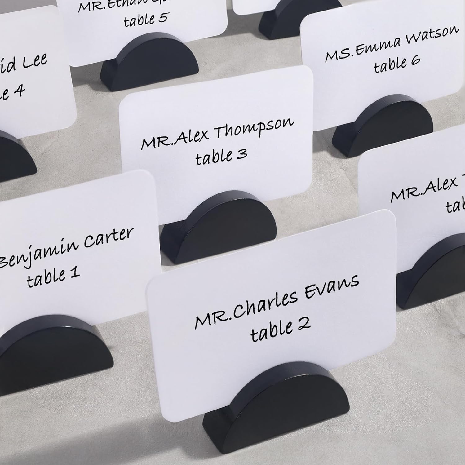 UNIQOOO 10 Set 2" Arch Black Birch Wood Stand with Cards |1.2mm Slot, for Name Cards, Place Card Holder, Photo Display Stand | for Event Decor, Retail Shop, Cafe Restaurant Menu, Business Card, Name Tag