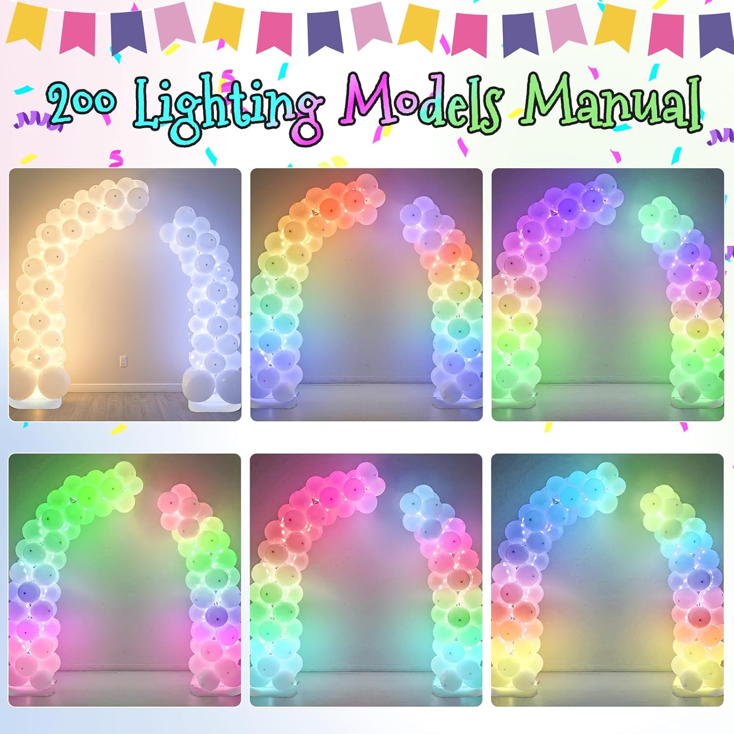 • Day & Night Brilliant Display: Transform any space with our dual-purpose balloon arch! Unlike basic kits that disappear at night, ours features built-in LED lights with 200 light modes from elegant warm white for weddings to vibrant color cycles for parties. The bright LED lights ensure your decor looks Instagram-perfect whether it's noon or midnight