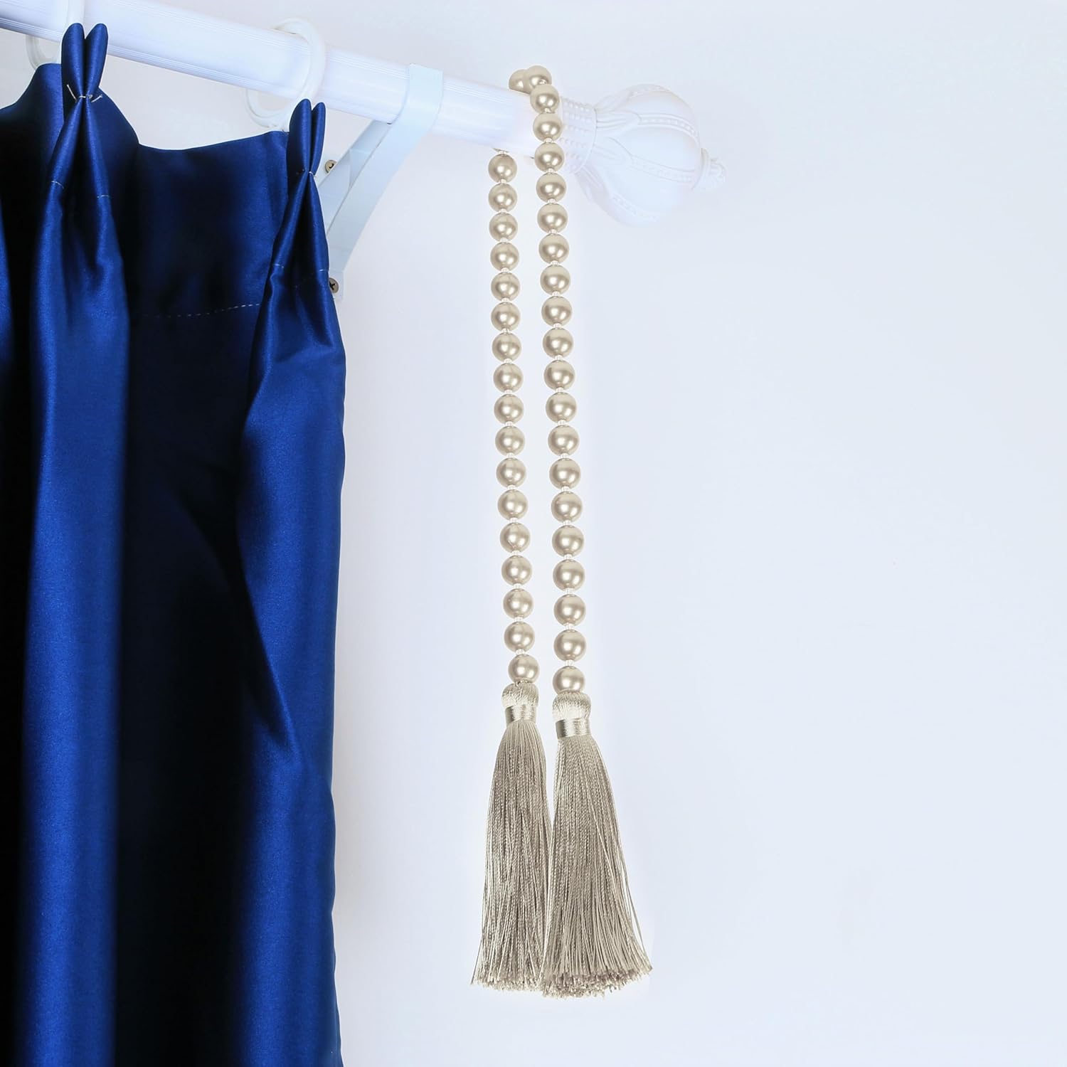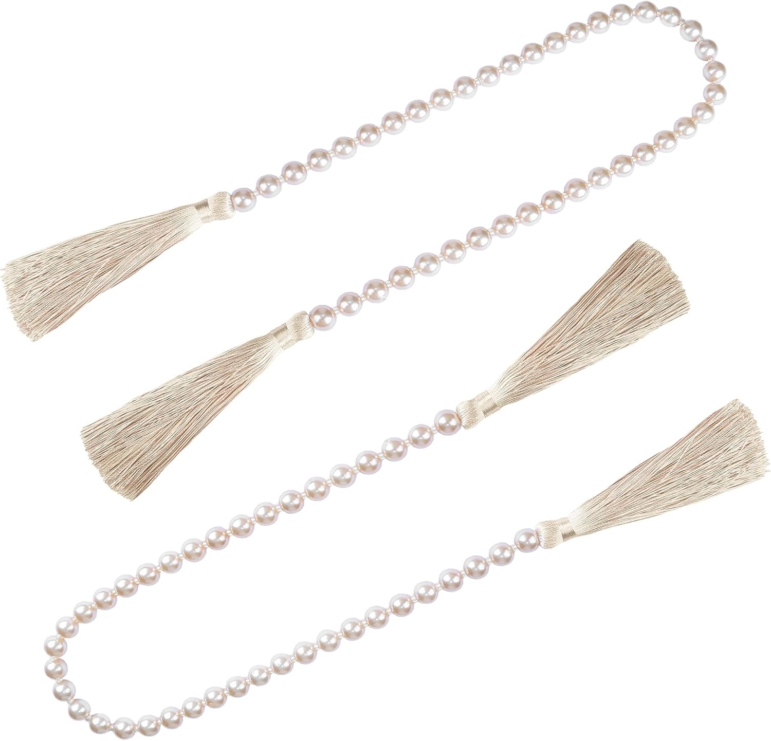 Fenghuangwu 34 Inch Glass Bead Garland with Tassels - Elegant Boho Table Decor, Fringe Wall Hanging for Wedding, Party, Farmhouse Rustic Prayer Bead Home Decoration(2 Pack,Off White)