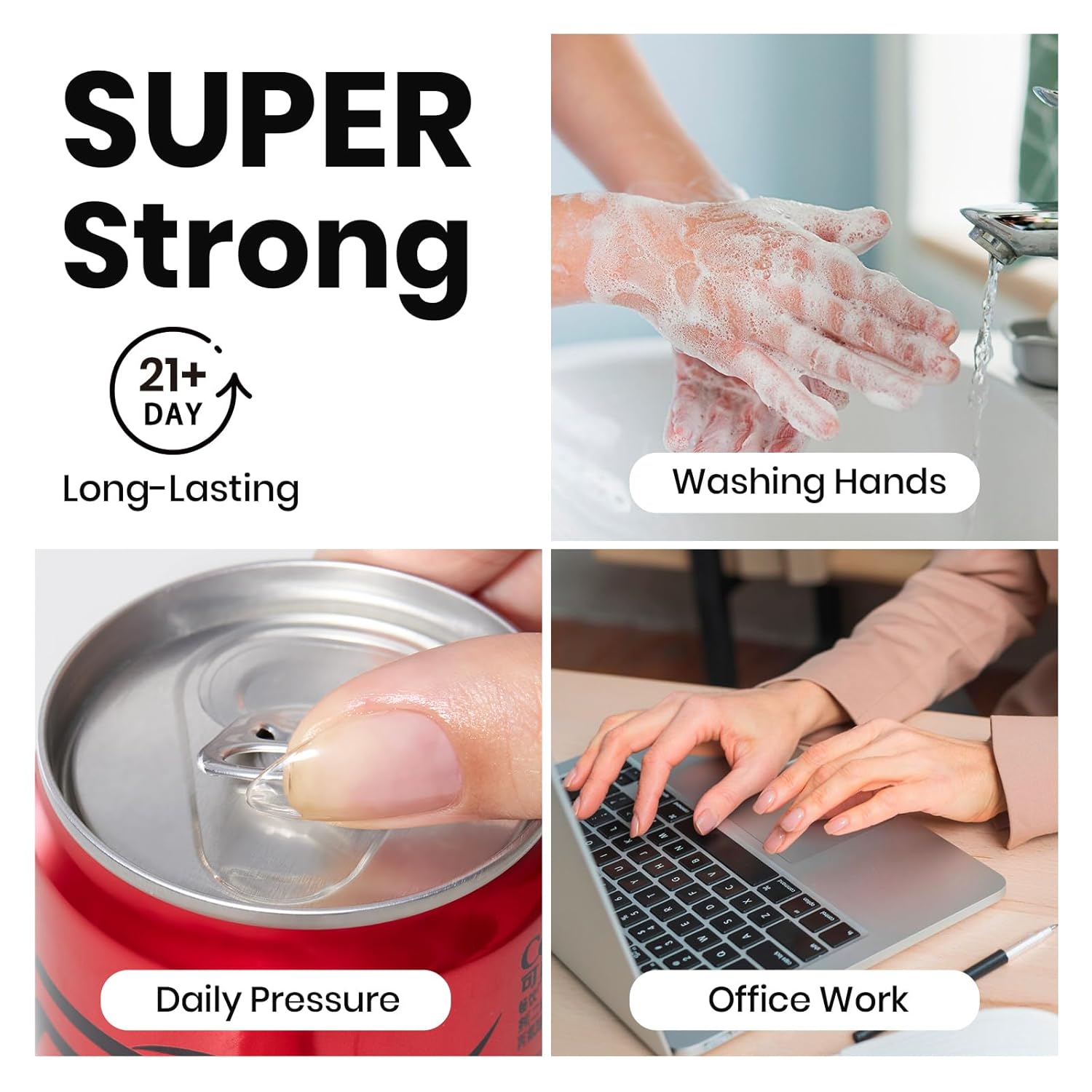 • Super Strong Hold for 21+ Days: Each application delivers a strong, long-lasting bond that keeps your nail tips secure for up to 3+ weeks—perfect for daily wear.