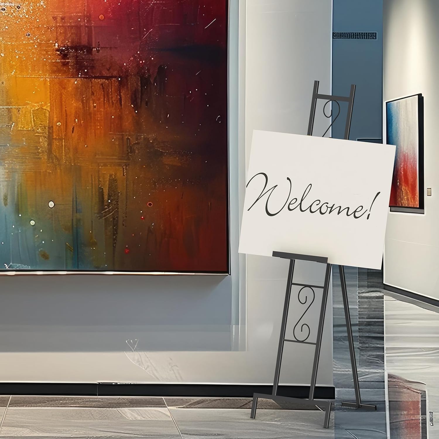 • Sturdy Metal Construction & Secure Base - This durable metal easel stand features a bottom support chain and anti-slip rubber pads, ensuring reliable stability for sign stands, paintings, and displays of various sizes and weights.