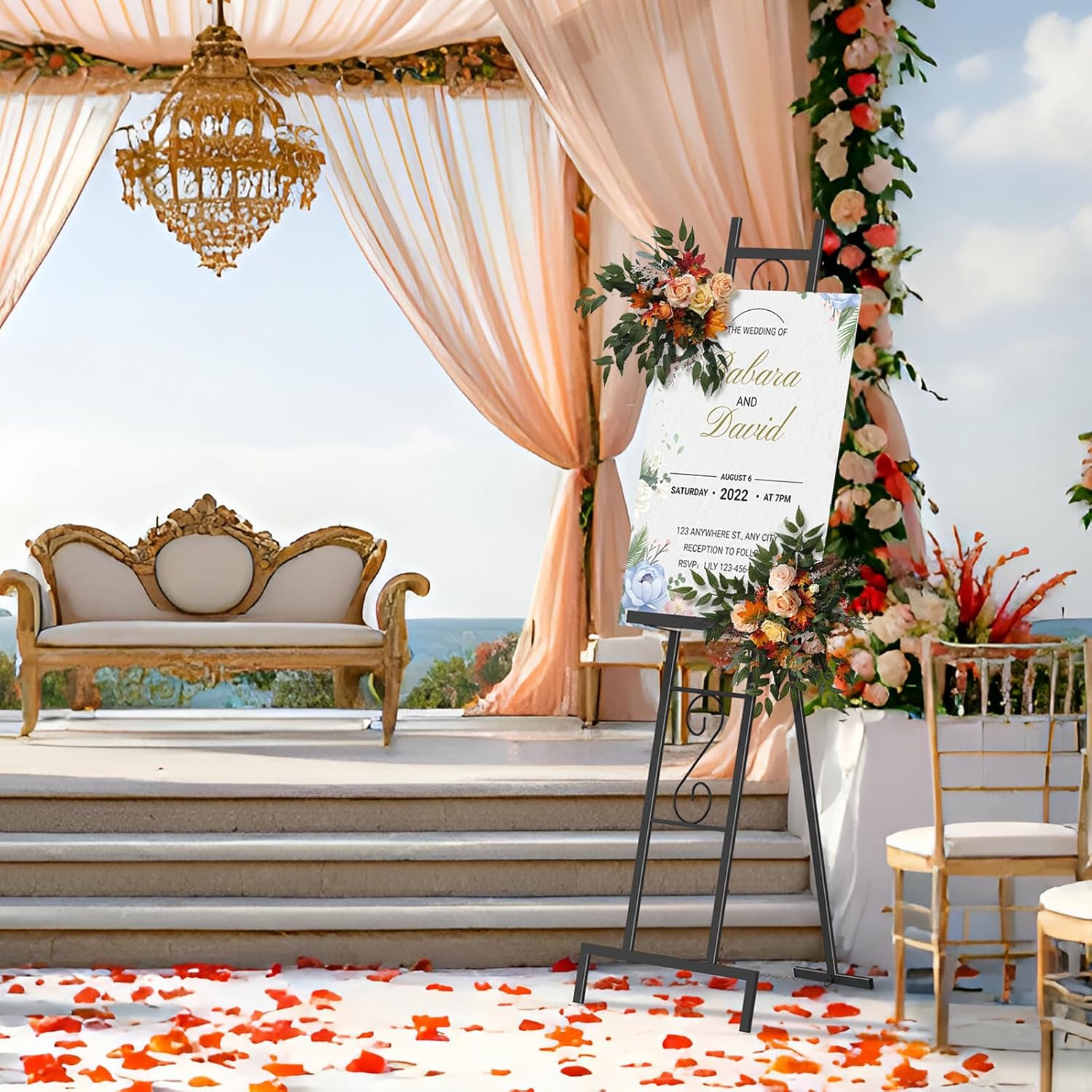 • Elegant Black Finish - The sophisticated Black finish on this metal display stand boasts clean lines and bold angles, seamlessly complementing any modern decor to showcase your artwork or wedding sign holder with style.
