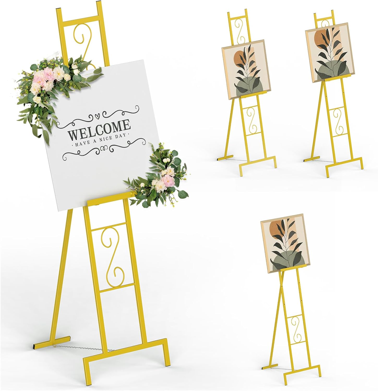 • Sturdy Metal Construction & Secure Base - This durable metal easel stand features a bottom support chain and anti-slip rubber pads, ensuring reliable stability for sign stands, paintings, and displays of various sizes and weights.