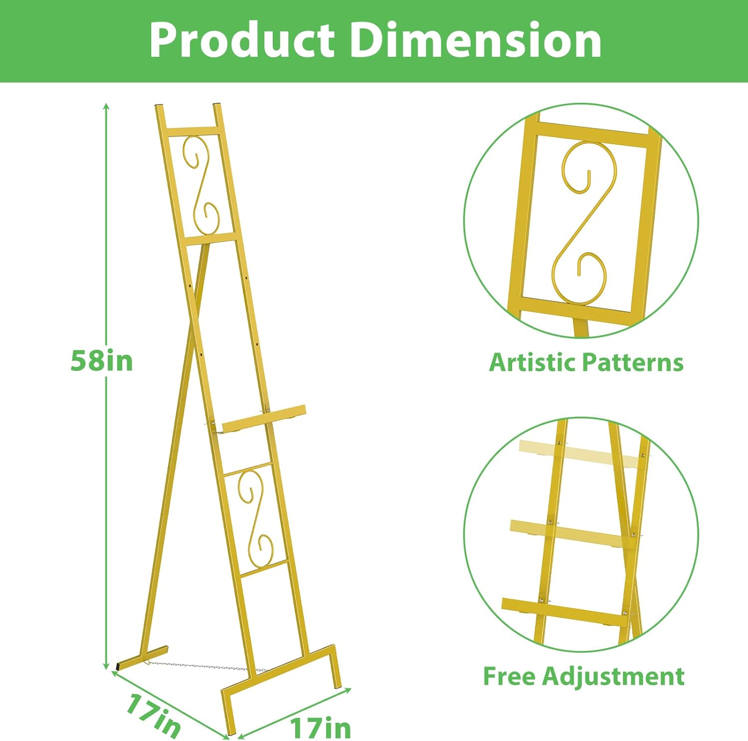 • Sturdy Metal Construction & Secure Base - This durable metal easel stand features a bottom support chain and anti-slip rubber pads, ensuring reliable stability for sign stands, paintings, and displays of various sizes and weights.
