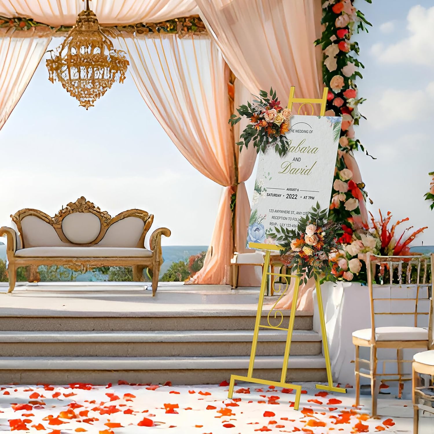 • Elegant Gold Finish - The sophisticated gold finish on this metal display stand boasts clean lines and bold angles, seamlessly complementing any modern decor to showcase your artwork or wedding sign holder with style.