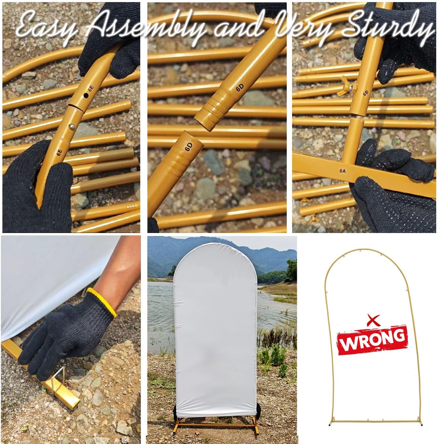 • Easy to Assemble -Each component has a corresponding label, In five minutes, you will get a balloon arch. Be Photo-ready instantly by placing the white spandex covers on the gold arches backdrop stand. dress up your party arch backdrop stand frame with flowers, leaves, lights, or balloons, and watch your vision become reality
