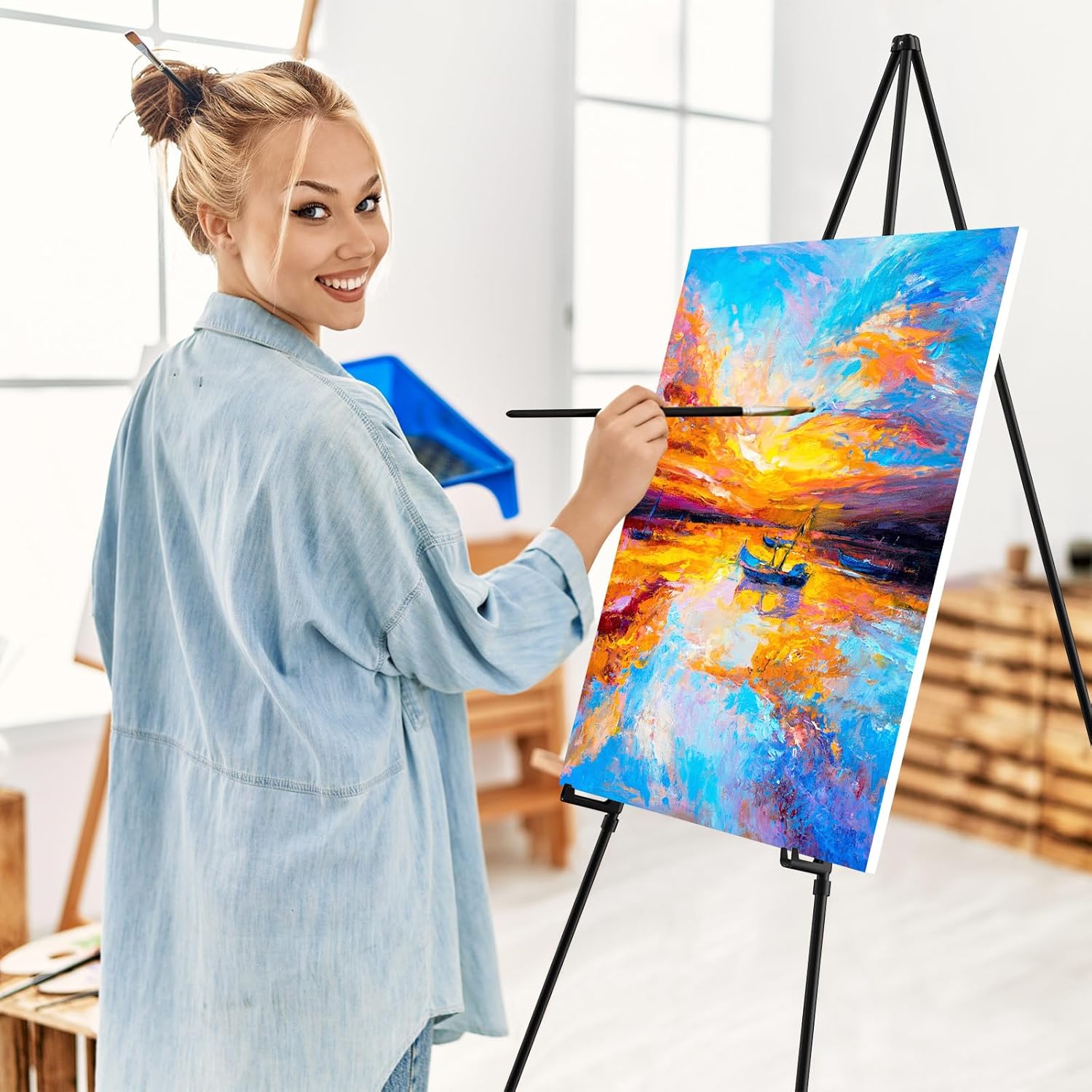 • 【Portable & Space-Saving】Weighing only 2.5 lbs, this lightweight easel stand folds flat and comes with a storage bag for easy transport. Great for artists on the go or event planners!
