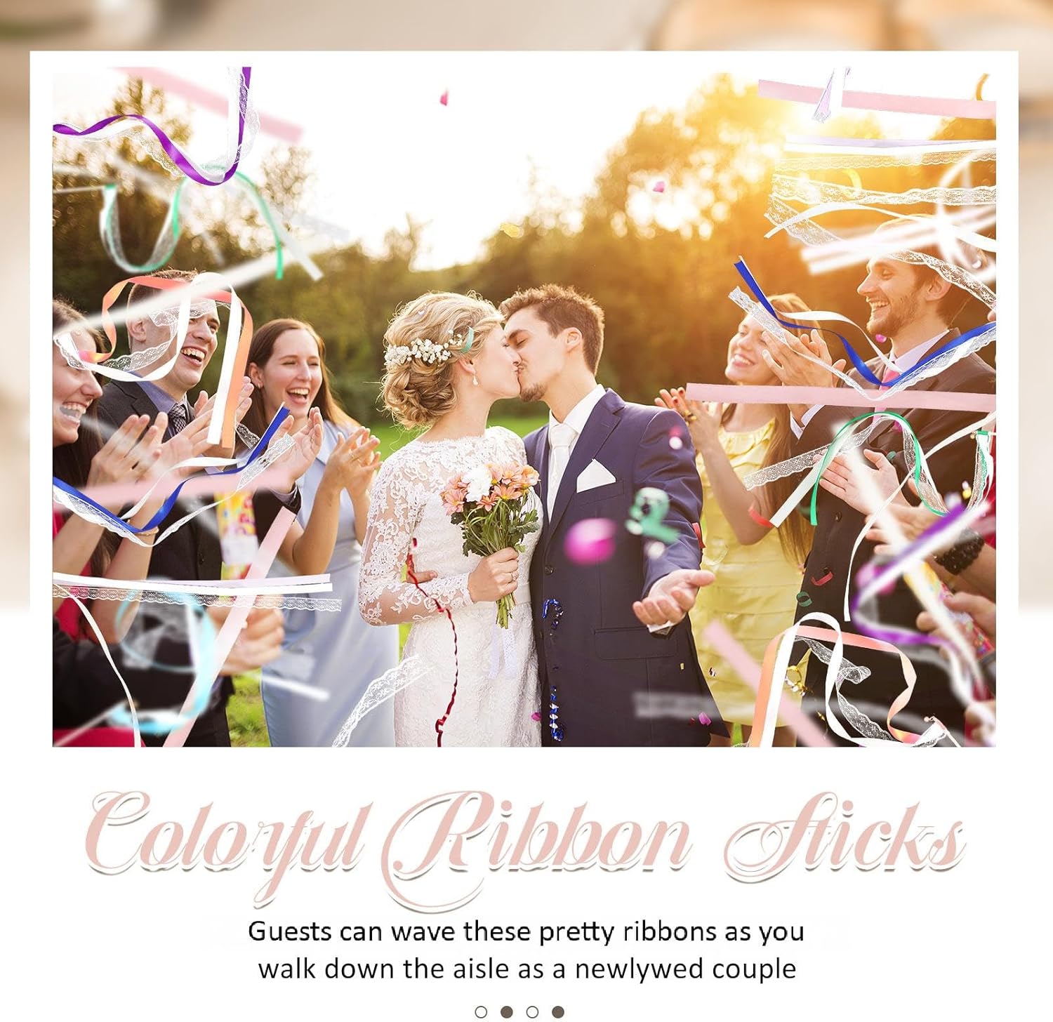 • Large Quantity: the package contains 150 pieces of wedding wands, with 10 color and beige ribbons, white lace, bells, enough for you to decorate an impressive wedding or party; You can also share them with your family and mates