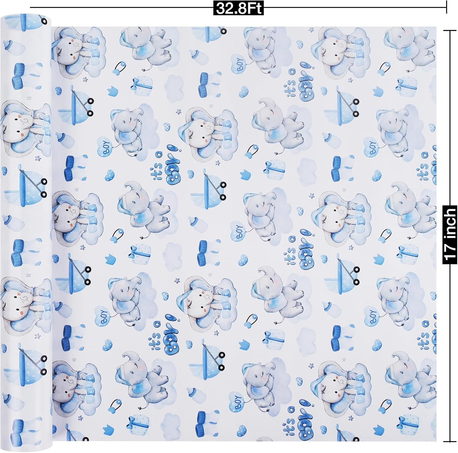 • Cute Baby Shower Design: The baby boy wrapping paper features charming blue elephant and cloud patterns, making it perfect for any baby shower celebration or birthday party for boys